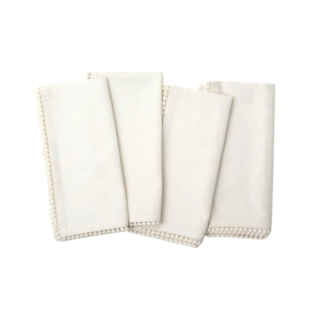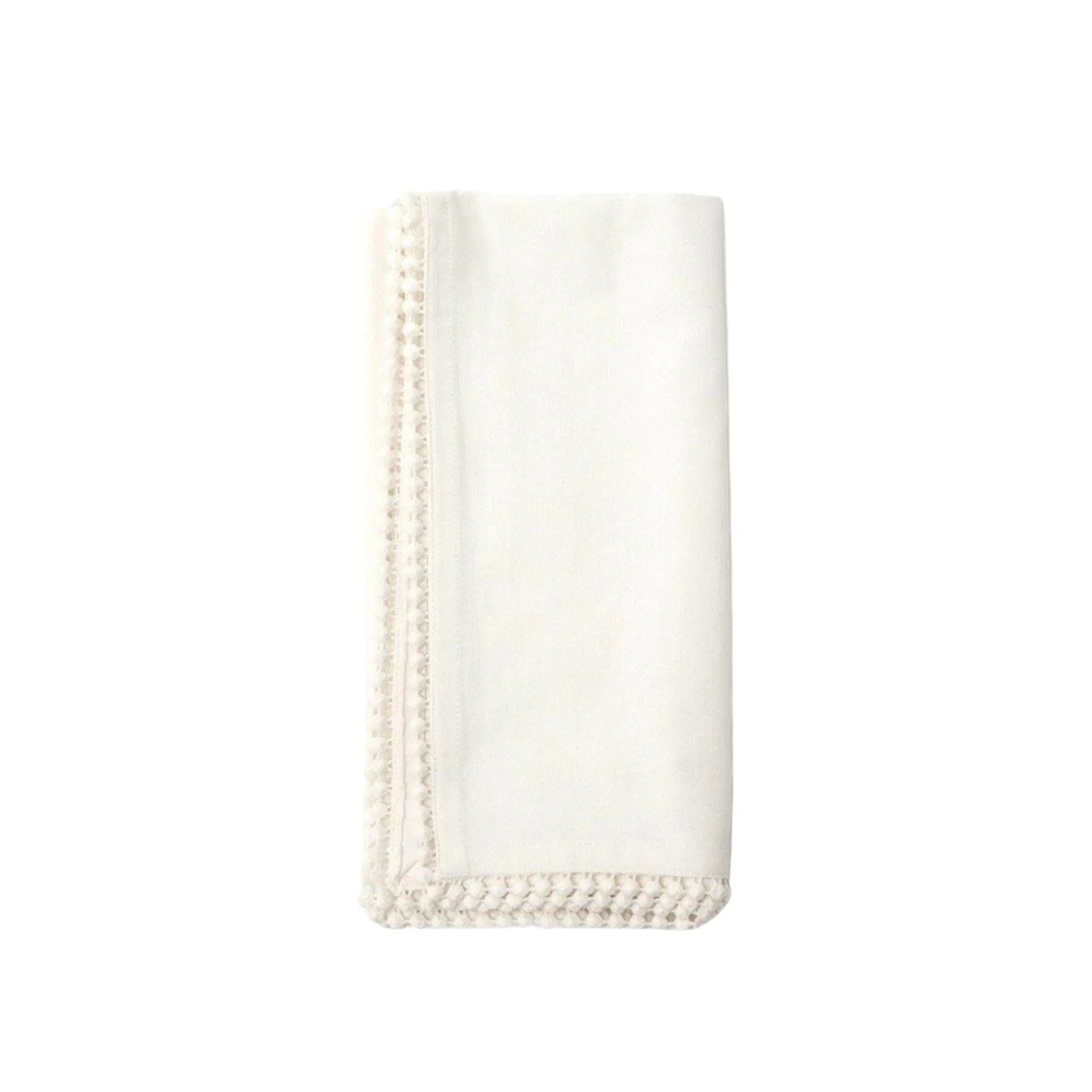 These napkins add feminine flair to any party. Make luncheons lovelier and cocktail hours cooler with the pom border of this cotton canvas collection. The set includes four napkins.