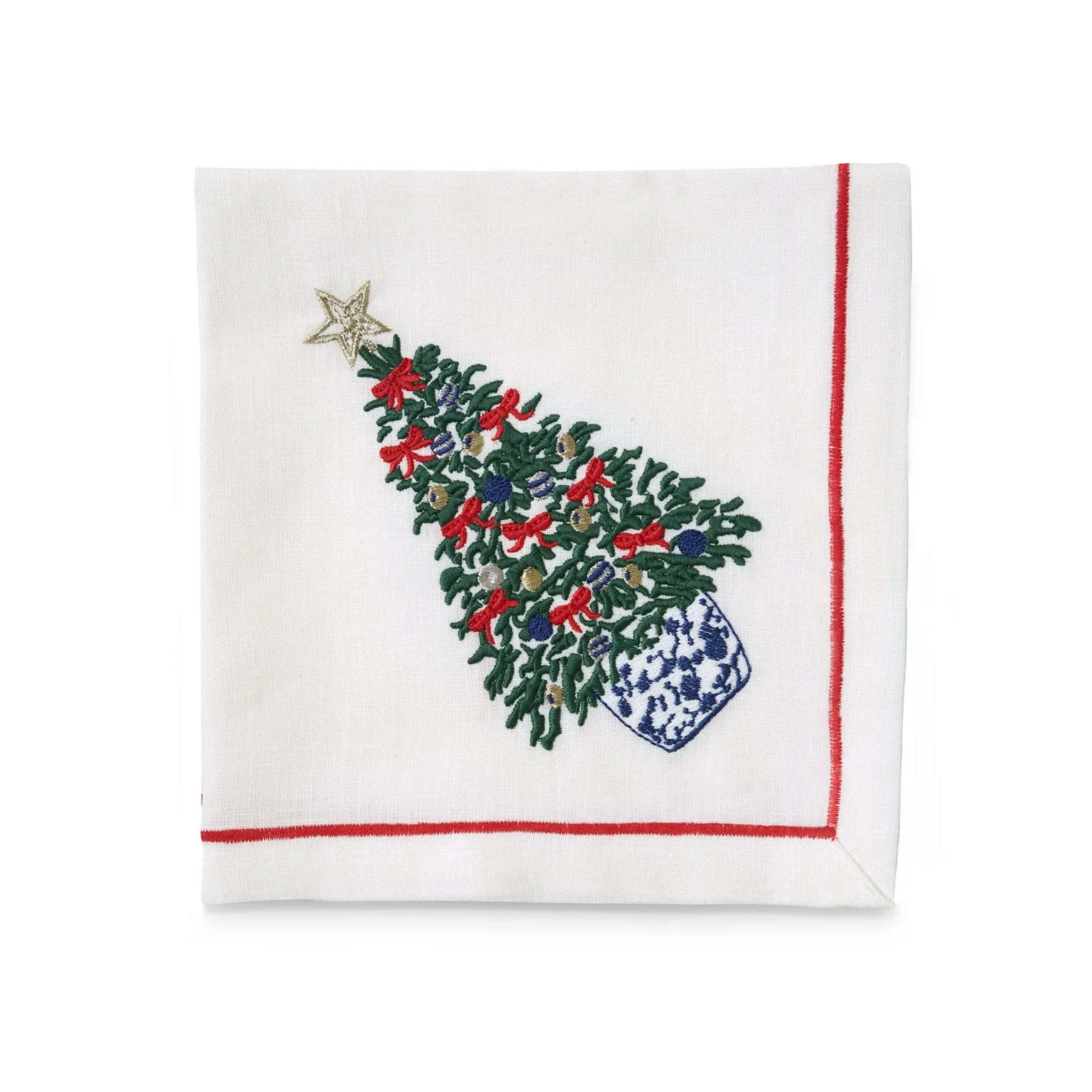 Set of 4 Noel Christmas Tree Embroidered Napkins