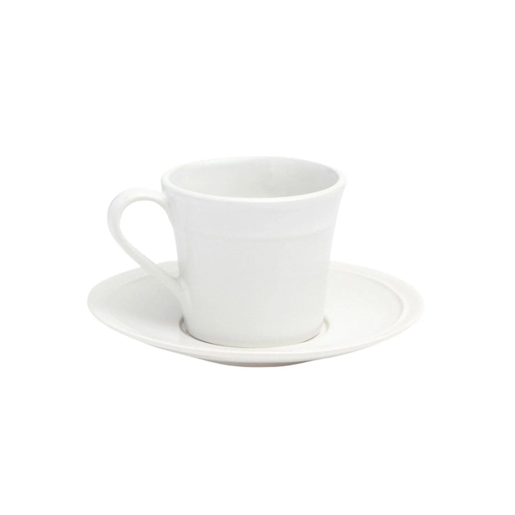 White Stoneware Espresso Cups and Saucers