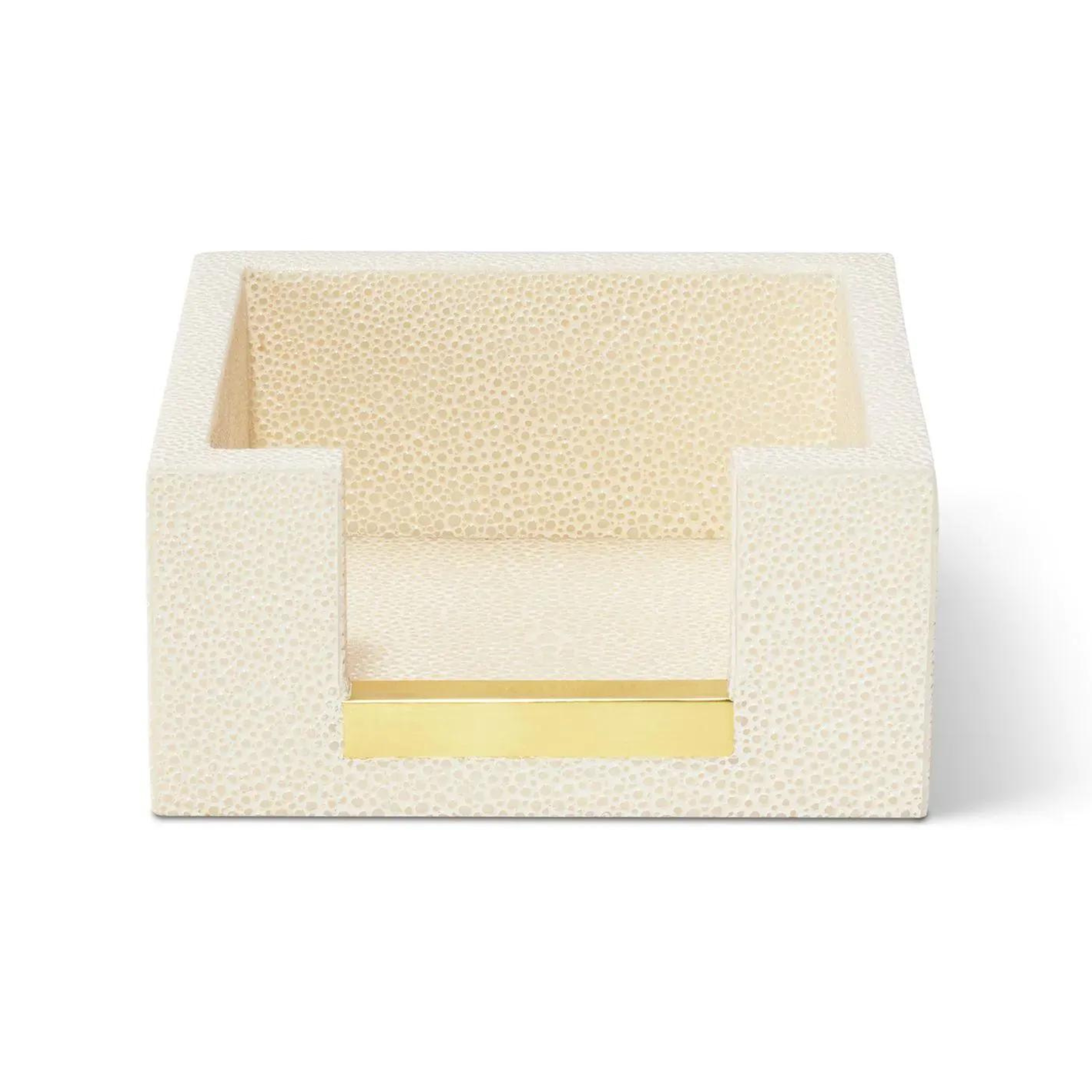 Store memo paper on your desk with this beautiful holder in luxurious shagreen edged in brass. A sophisticated way to stay organized, it also makes a perfect gift for someone with a home office.