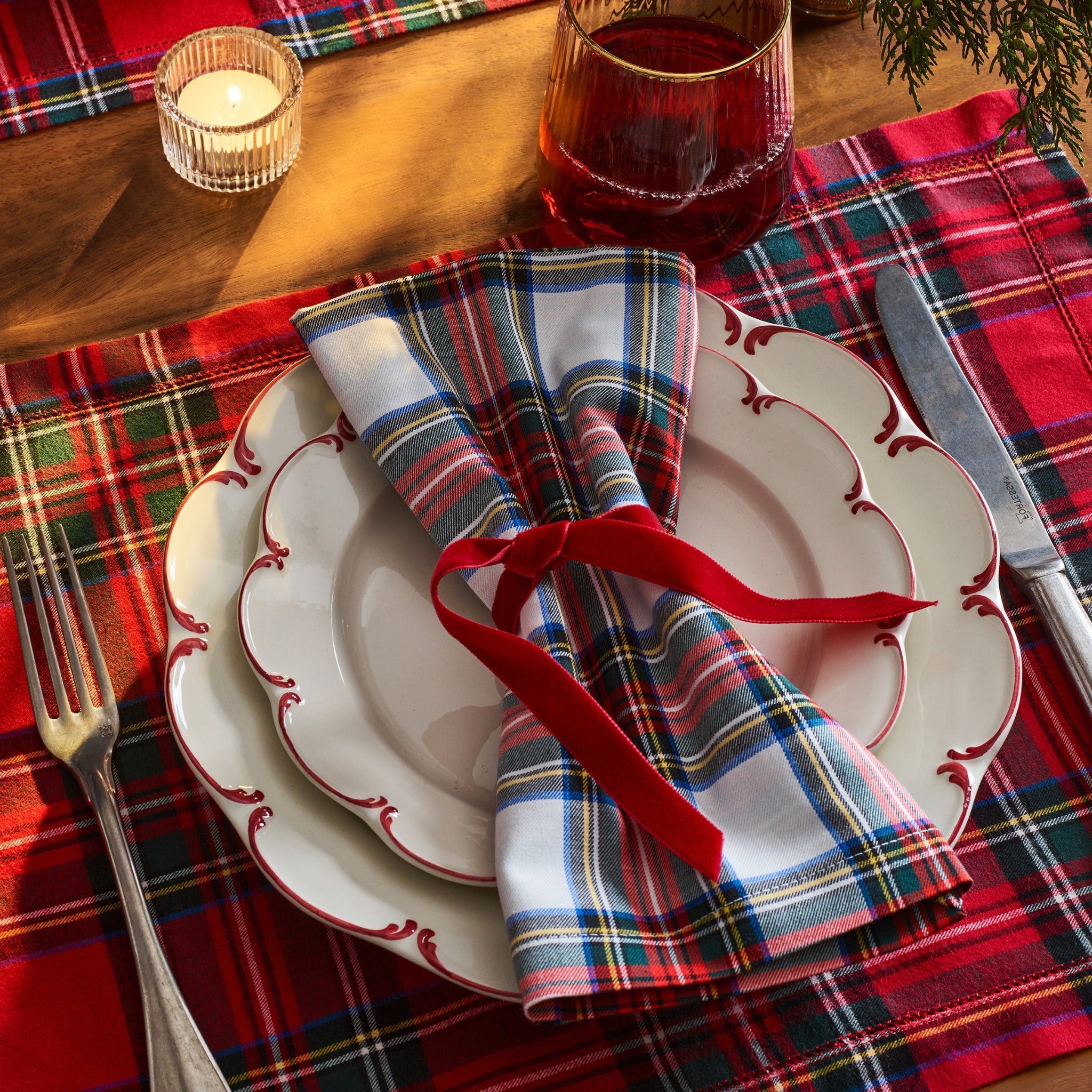 The iconic, classic Scottish plaid that has graced holiday traditions for decades, Imperial Tartan is a celebration of the vibrant hues of the season: scarlet, navy, green and snowy white. Dress up your tablescape with this set of 4 placemats, crafted from the finest quality 100% cotton in the Petite Plume prints you love. Just in time for the holidays, they’re designed to elevate entertaining and create a festive tablescape. Bon appétit!