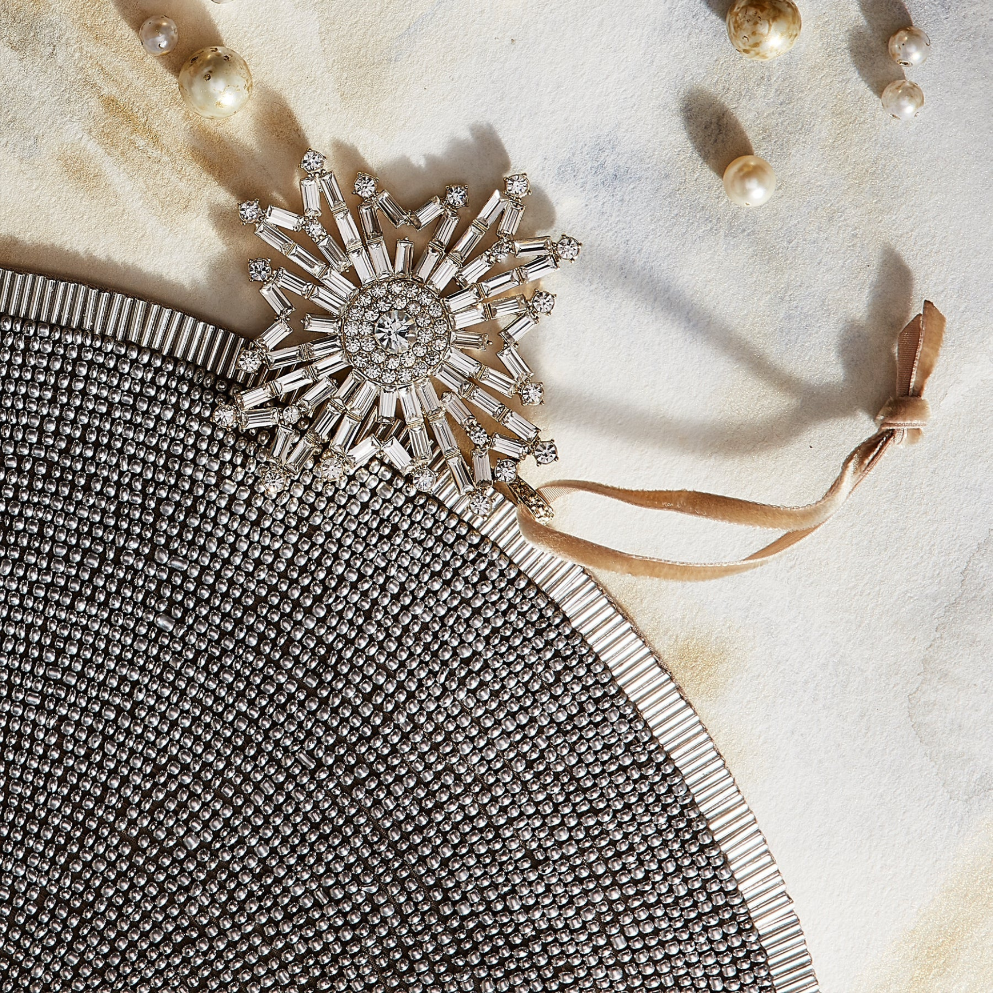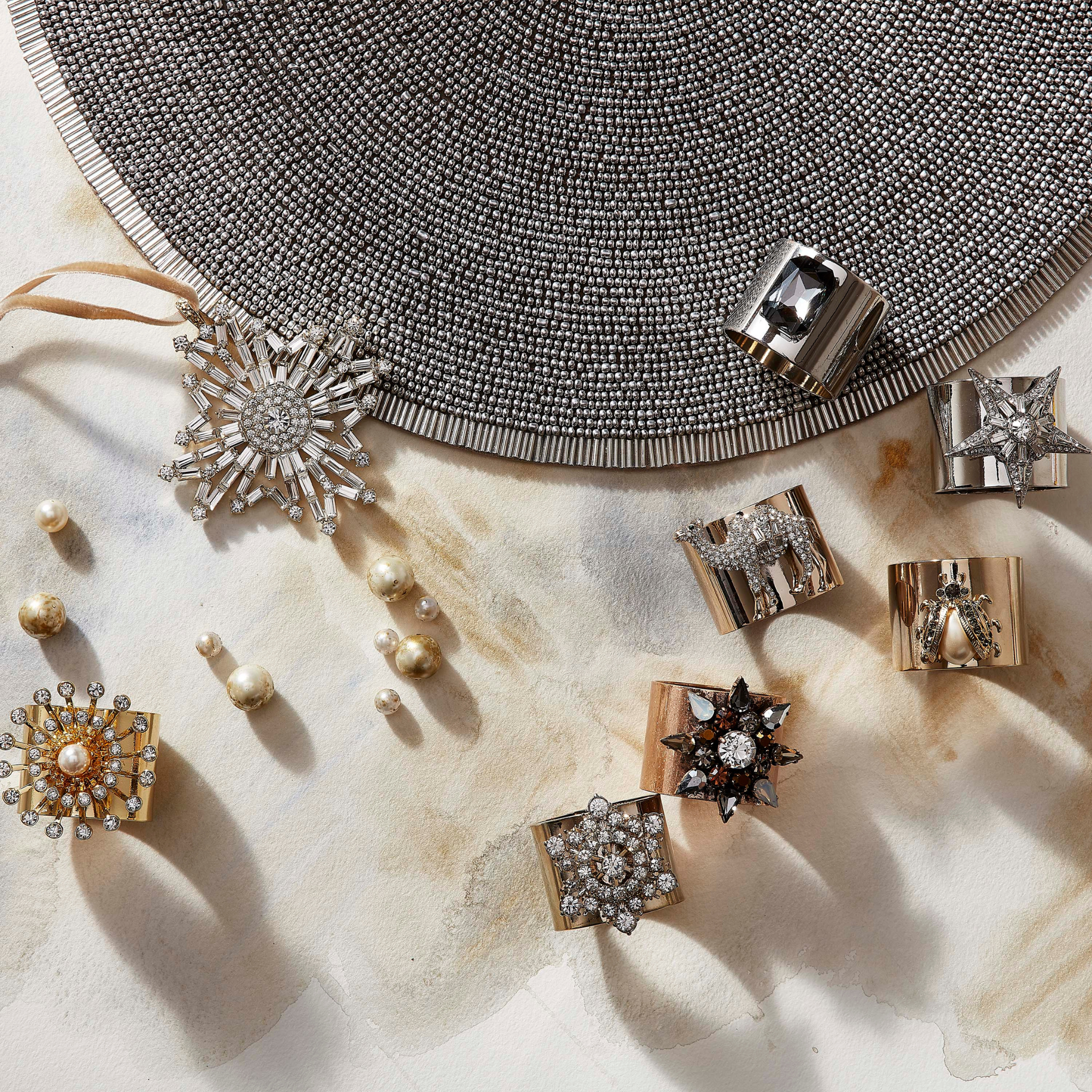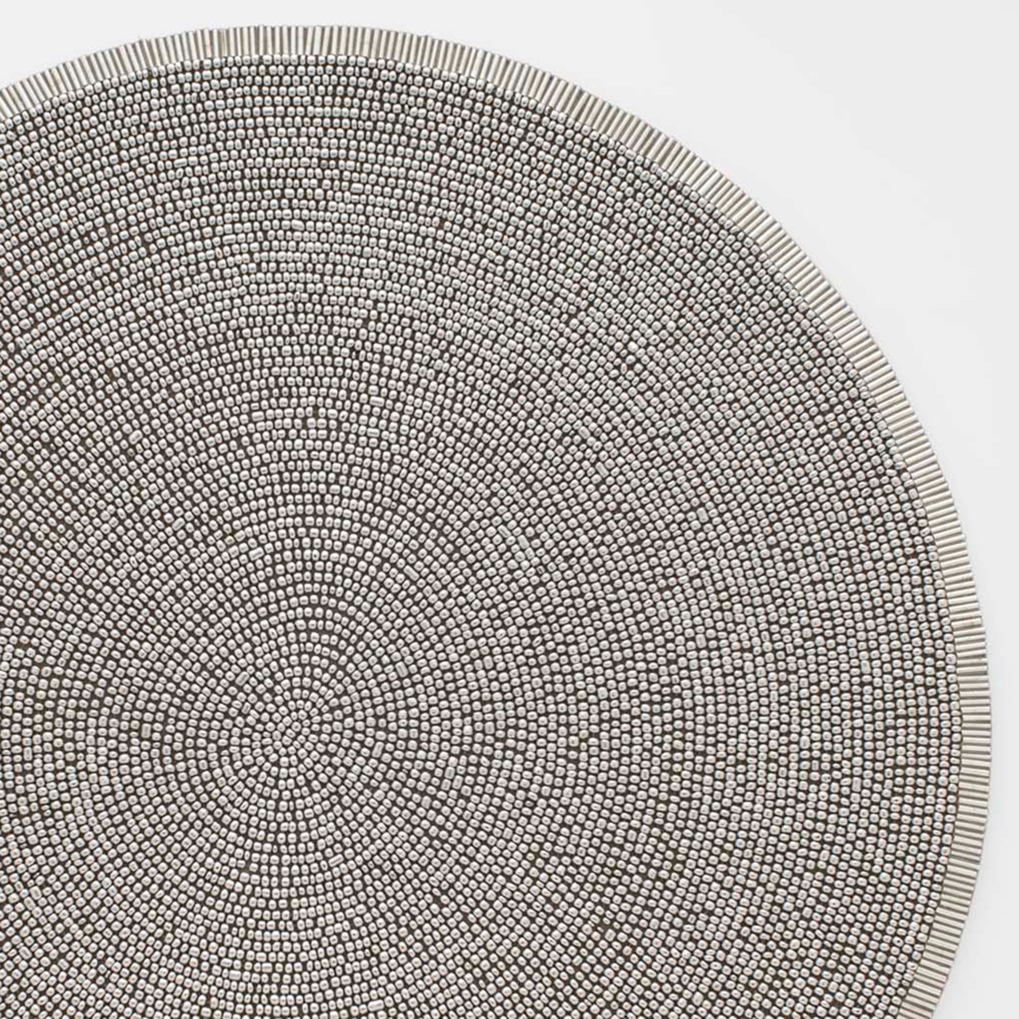 With so many special silver napkin rings, we wanted a simple placemat as an easy match for them all. This hand-beaded charger has just the right amount of detail – with side stacked bugle beads around the edge – keeping it simple yet fabulous.