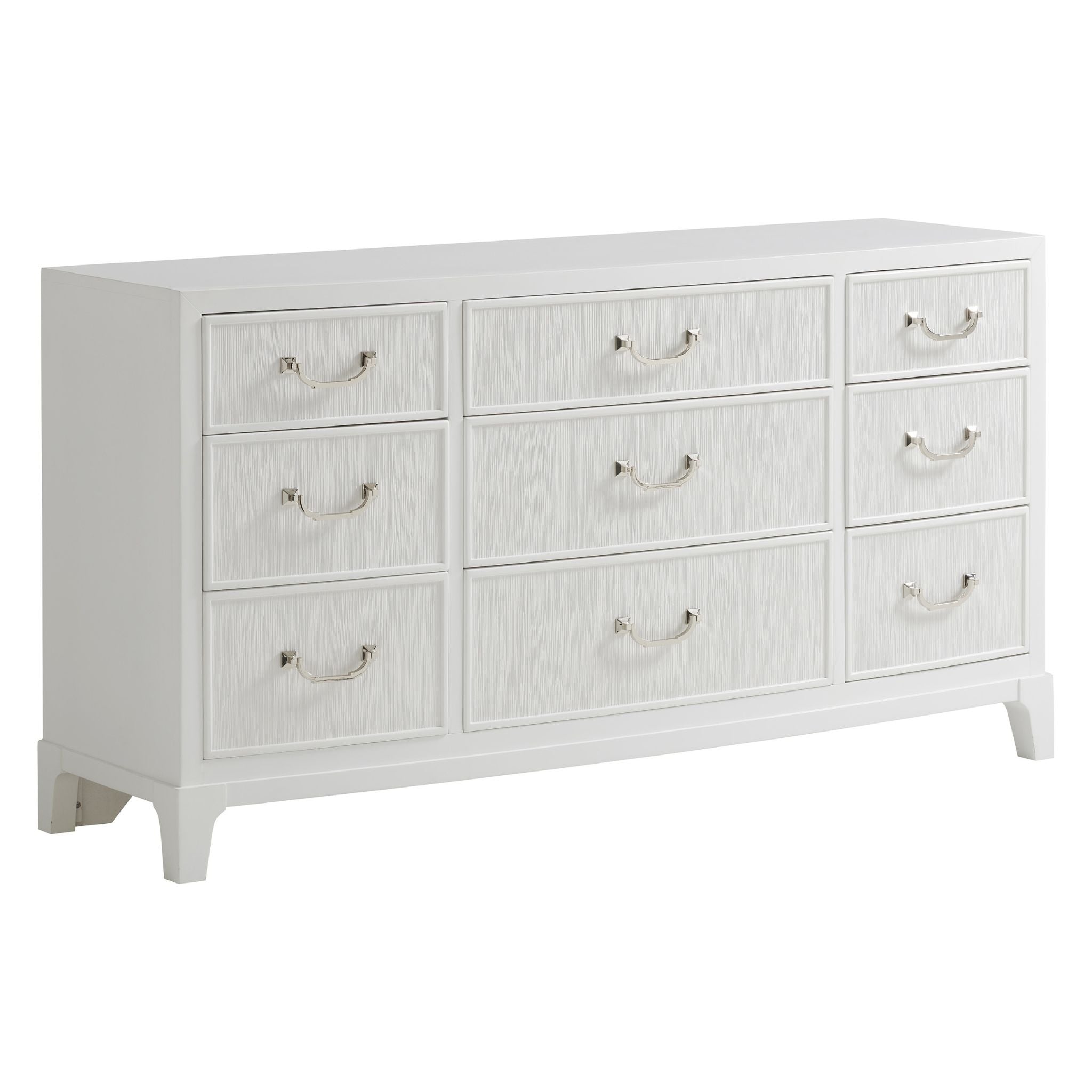 The Silver Lake Triple Dresser combines classic elegance with modern functionality, making it a standout piece for luxury bedroom storage. Crafted with a refined bowfront silhouette, this 68.75-inch wide dresser features nine spacious drawers with textured veneers, polished nickel hardware, and soft-touch self-closing glides for smooth operation. The Alabaster white finish adds a clean, coastal charm, while the bracket feet offer timeless appeal.
