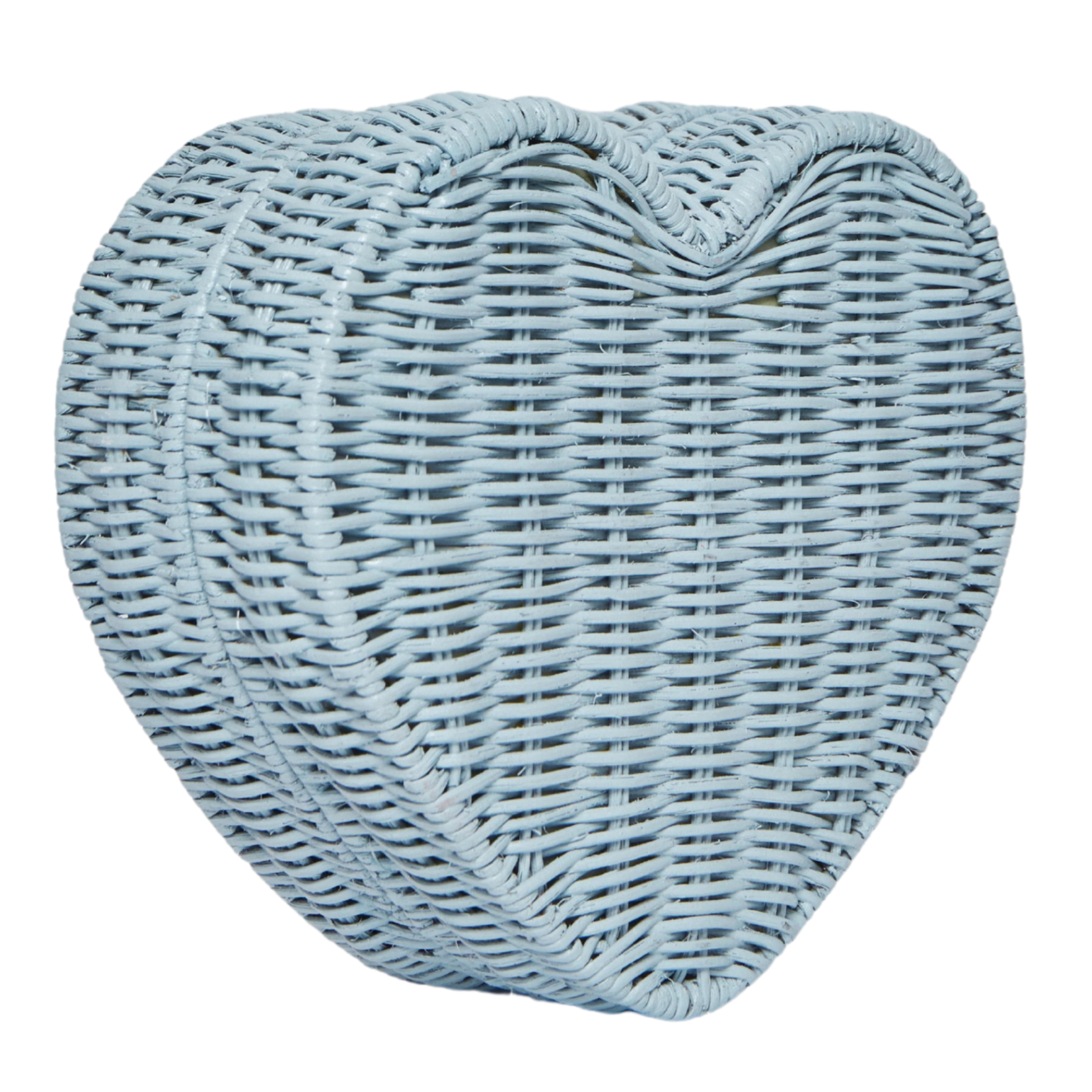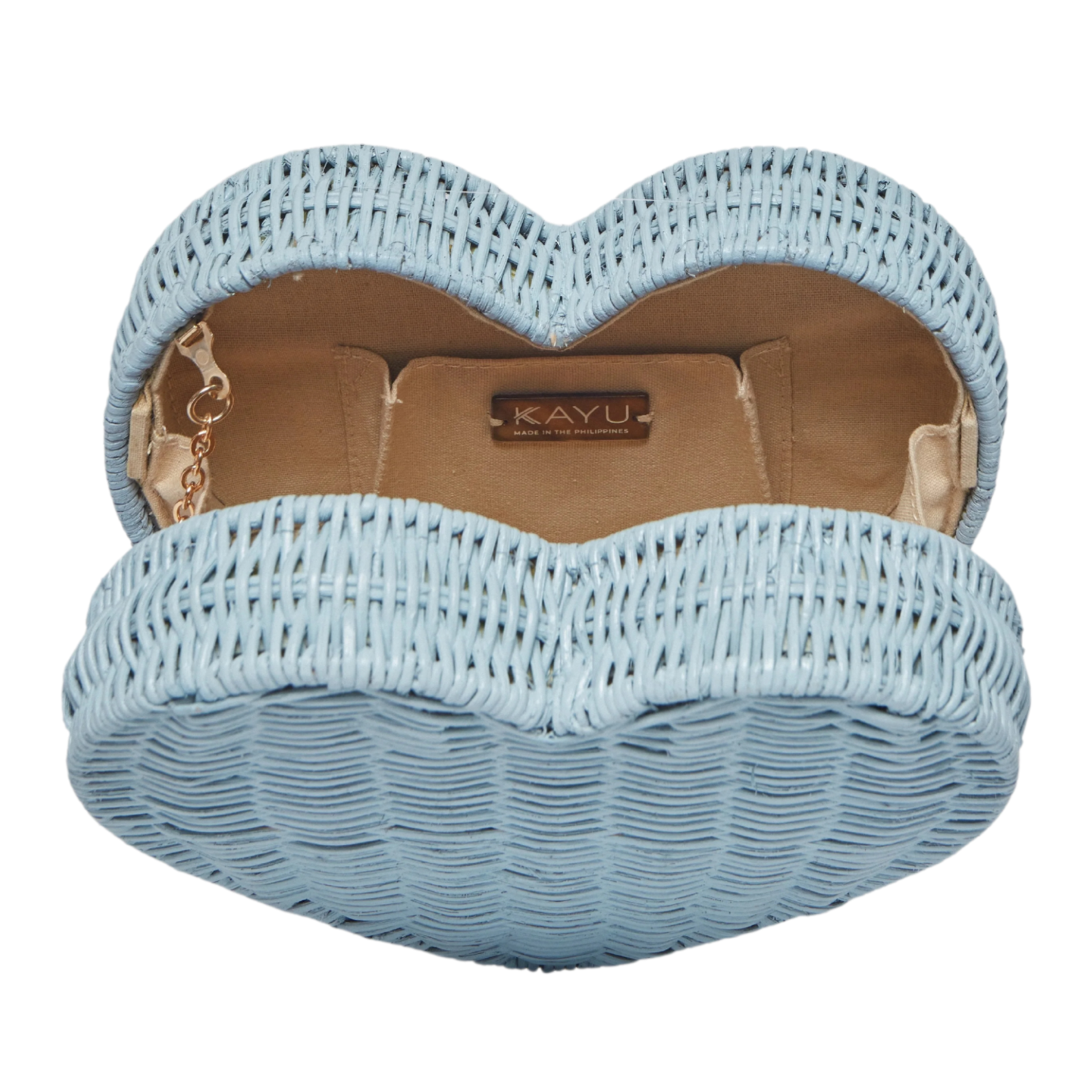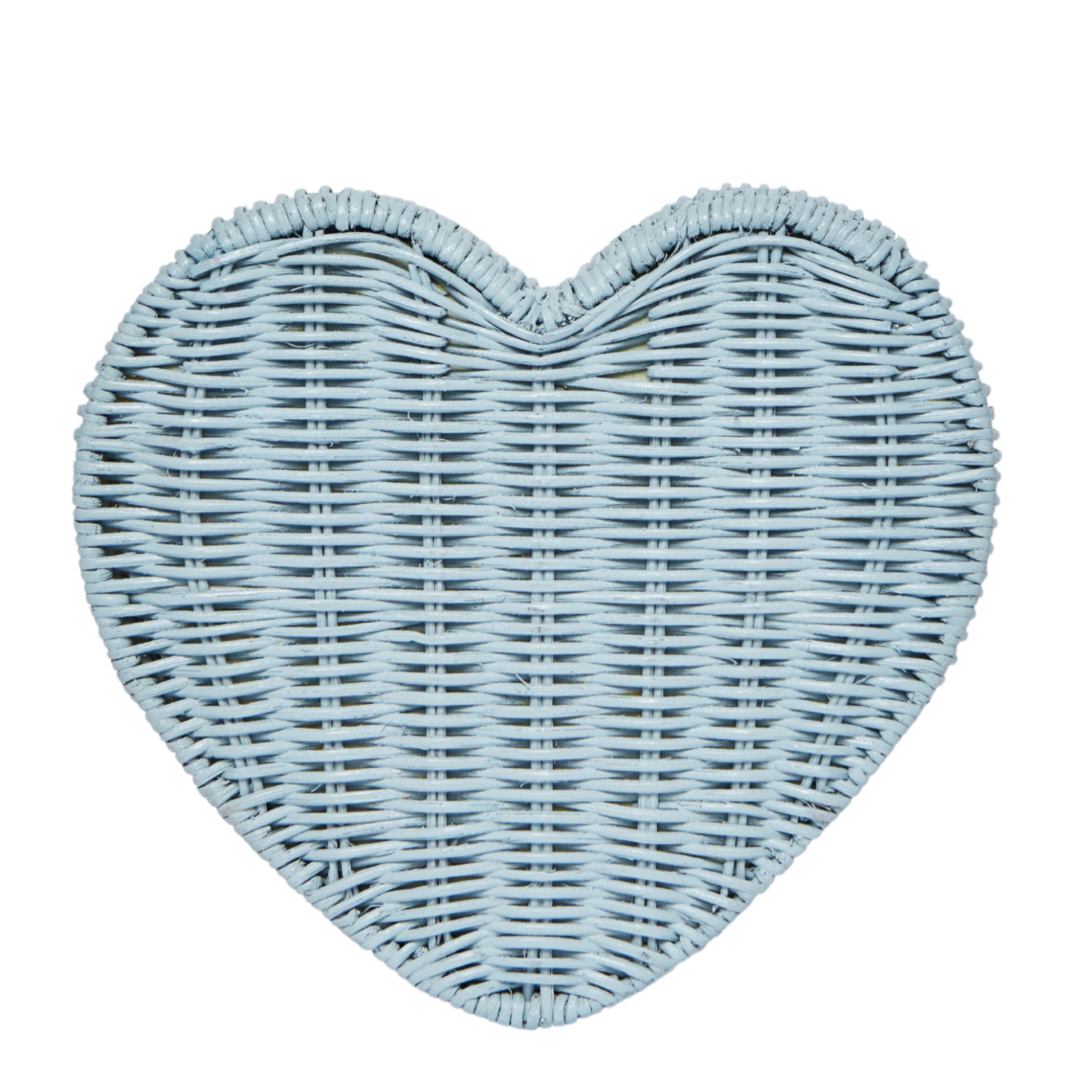 Sisal Heart Blue Wicker Straw Clutch Bag