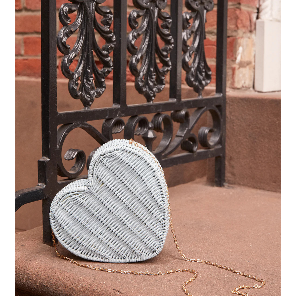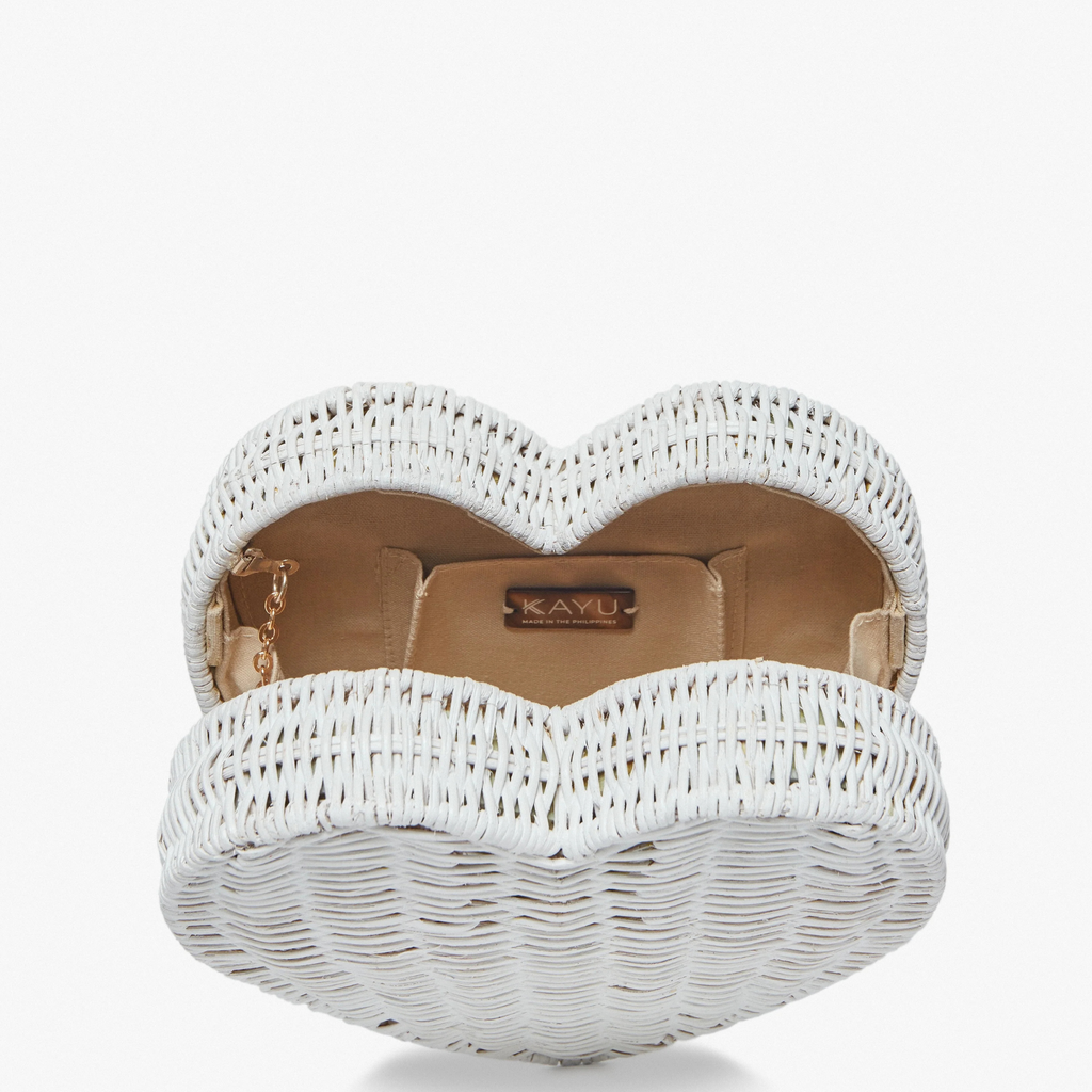 Sisal Heart White Wicker Straw Clutch Bag