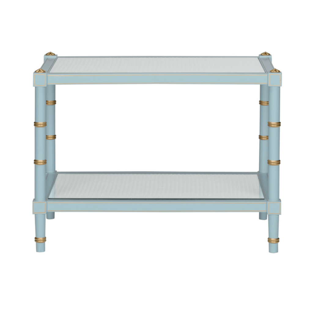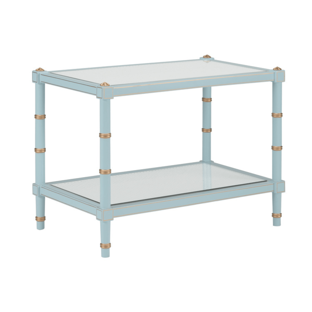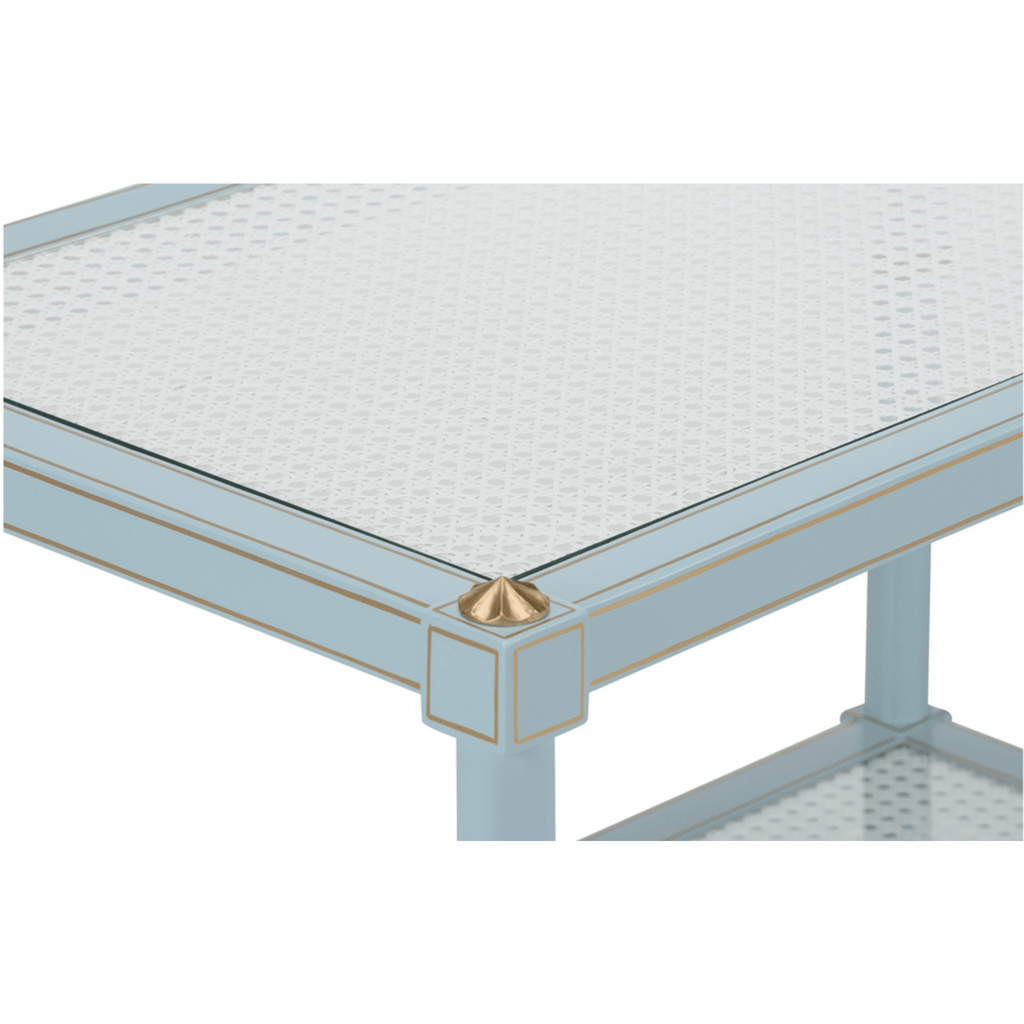 Sky Blue Wood & Cane Two Tier Cocktail Table