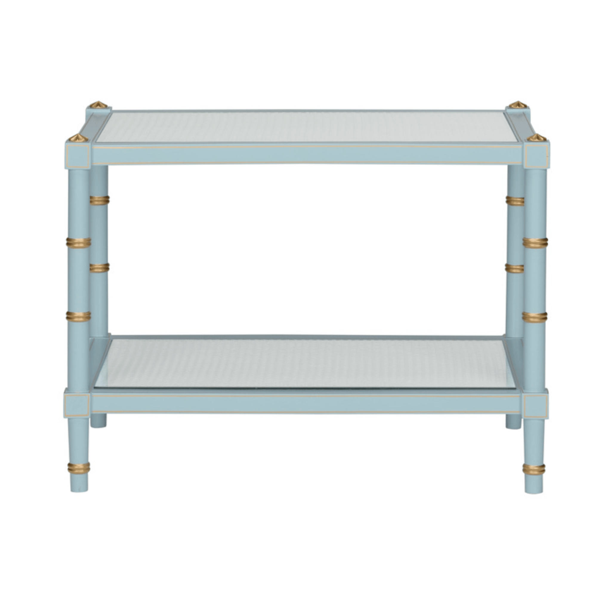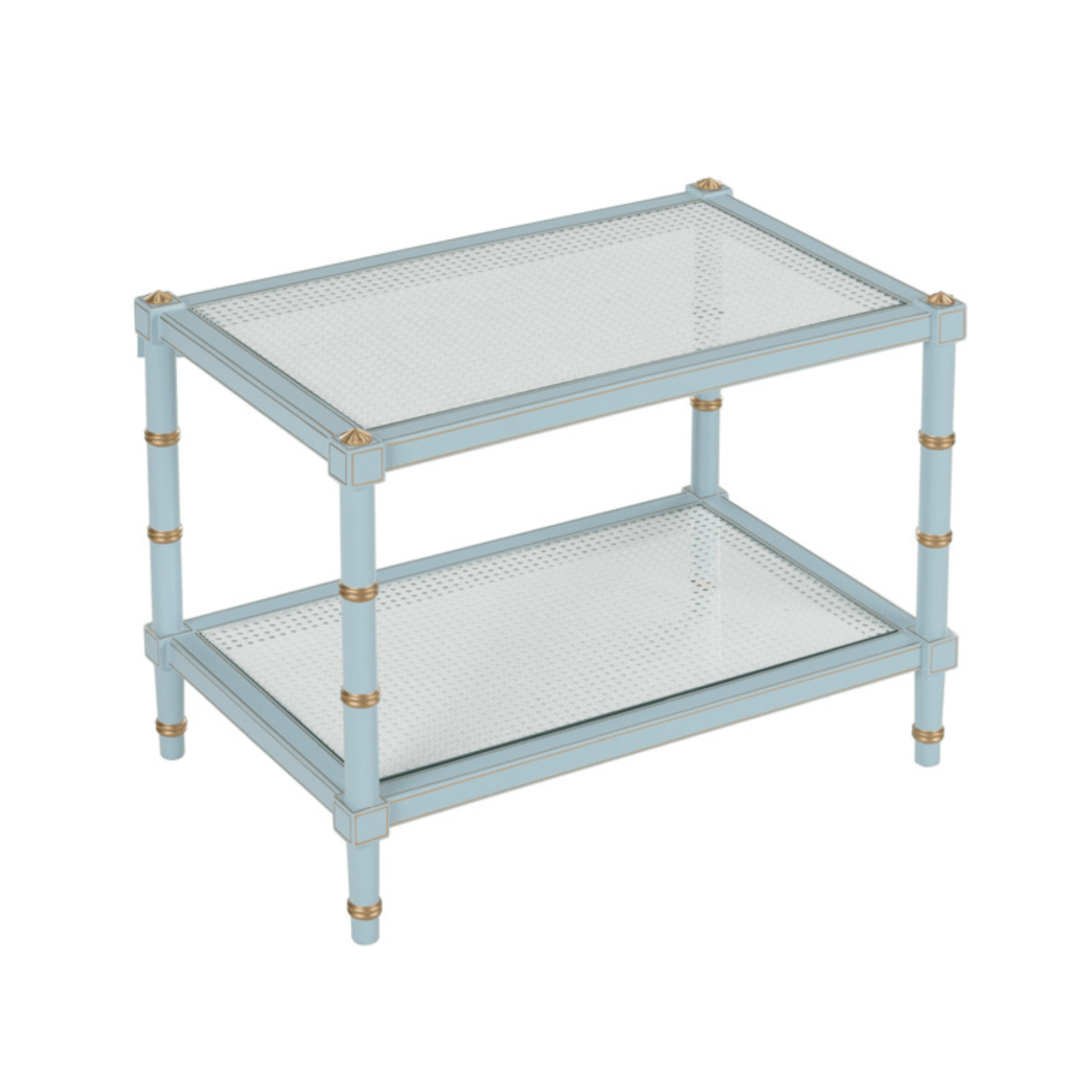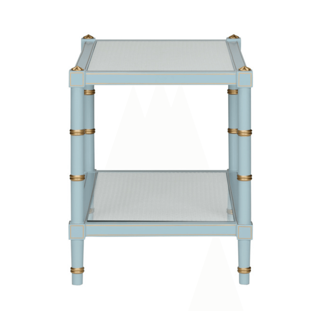 Sky Blue Wood & Cane Two Tier Cocktail Table