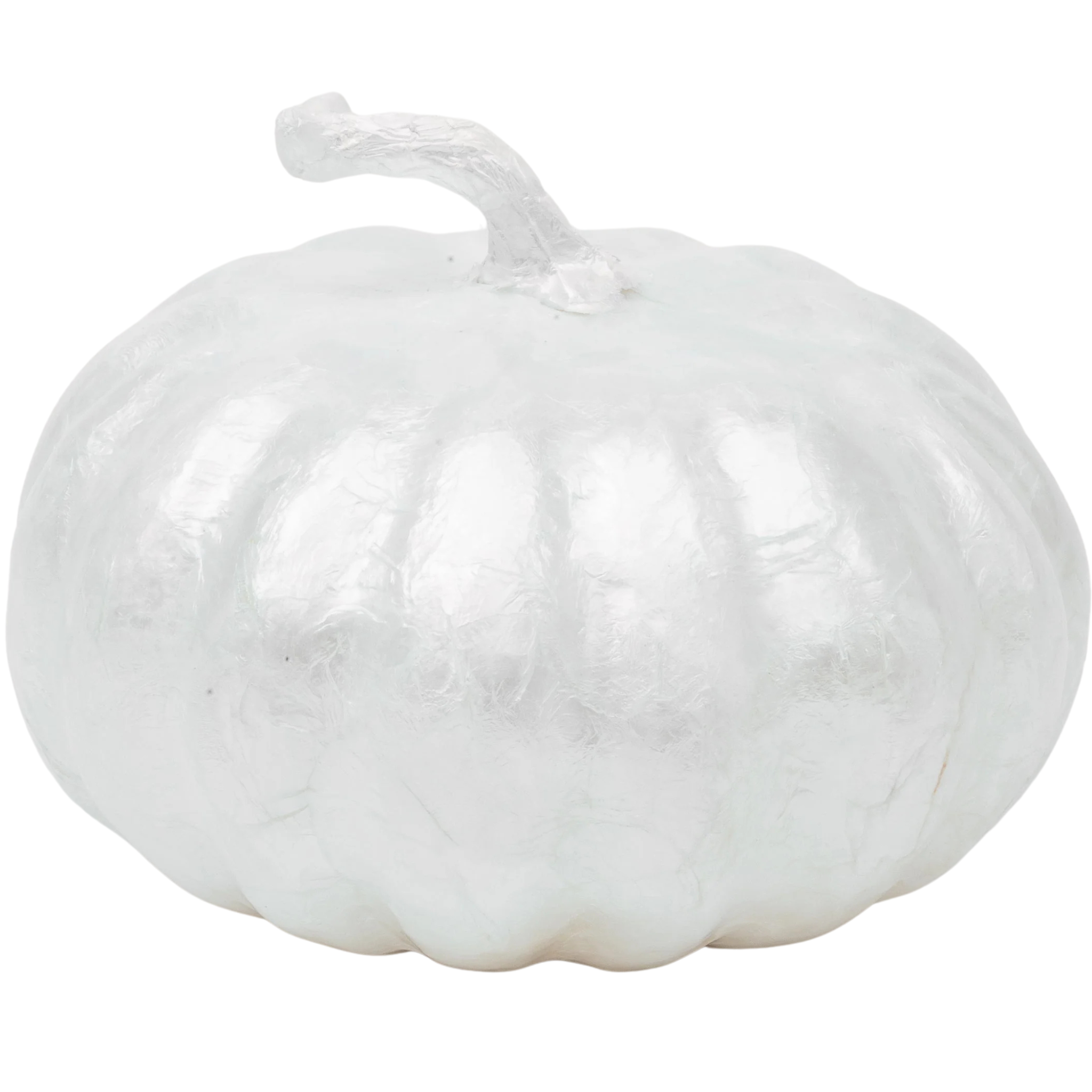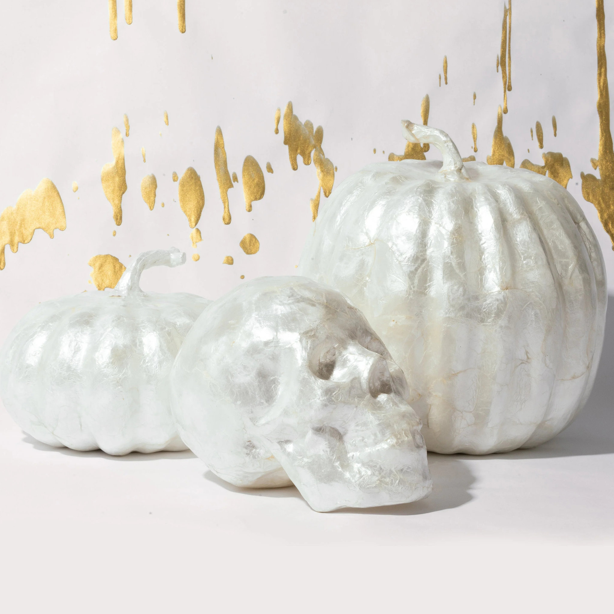This small decorative pumpkin is made from delicate capiz shells with a soft, lustrous pearl finish, it captures the essence of autumn with a sophisticated twist. Its gentle shimmer and natural texture make it a perfect centerpiece or accent piece for seasonal displays, blending rustic charm with refined beauty.