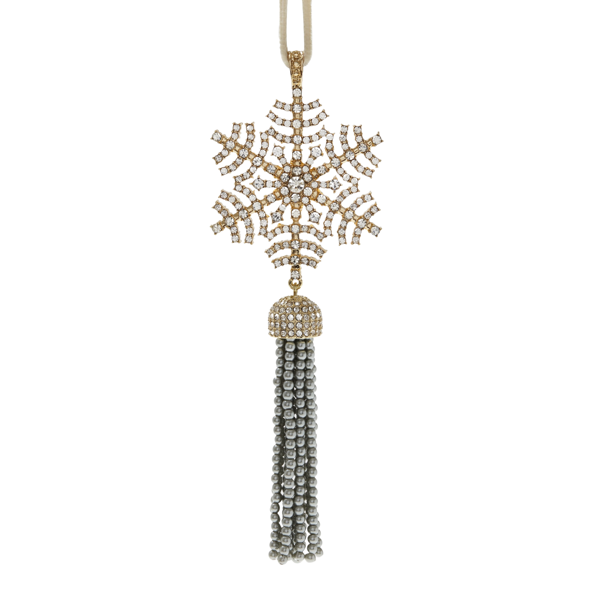 We love snowflakes and we love tassels! So I couldn't wait to put them together for a dramatic holiday ornament! It's super sparkly and will be stunning under the Christmas tree lights! The tassel is made of small, hand-strung pearls...so this one looks and feels VERY special... for sure a future heirloom!