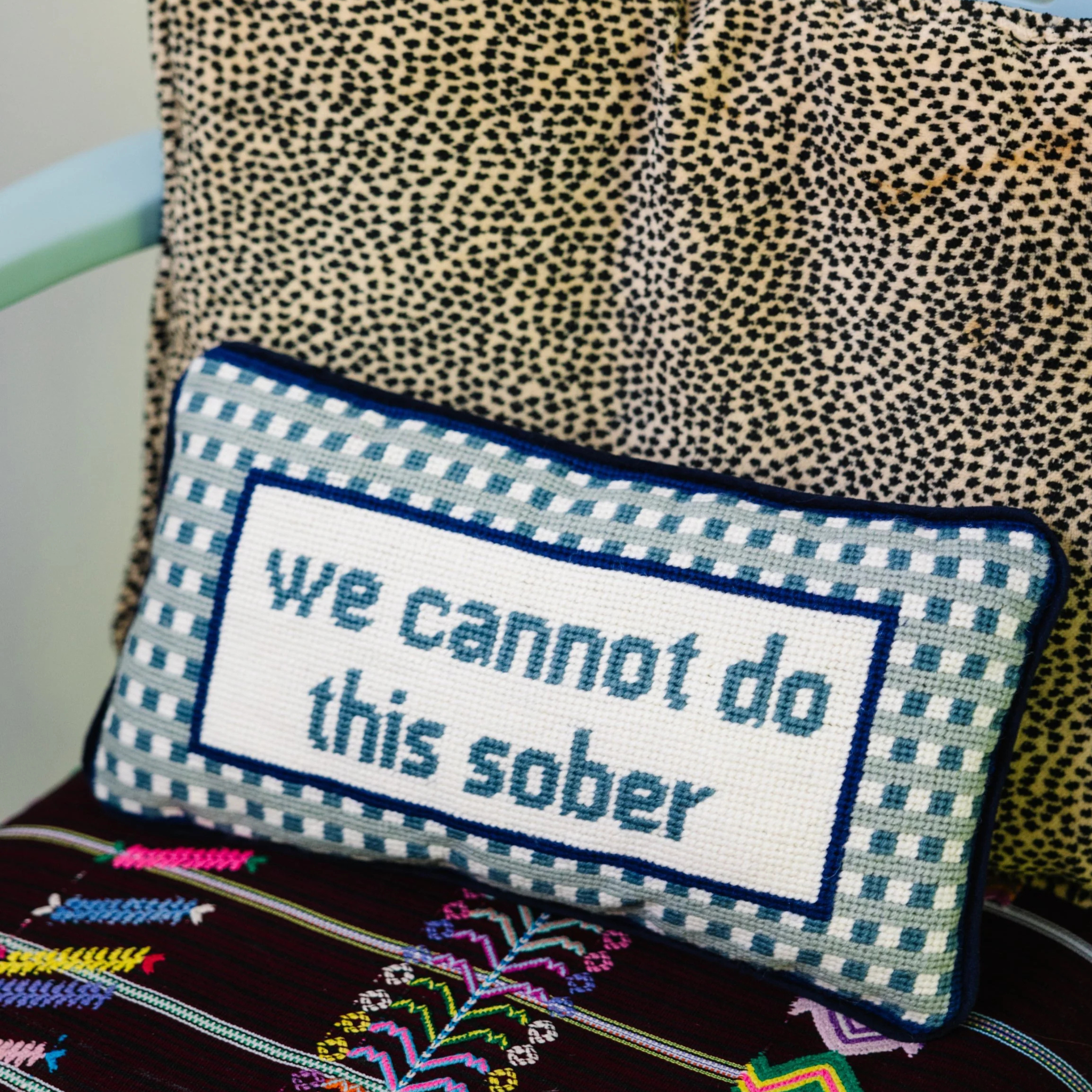 For those who know that certain situations call for more than just your everyday self—this pillow is for you. It’s for the ones who say, “There’s no way we’re doing this sober,” because some moments are best tackled with a little extra fun—and maybe a drink or two. Hand-stitched and finished with luxe velvet backing, a modern twist on a beloved Southern tradition. Click on images for greater detail.