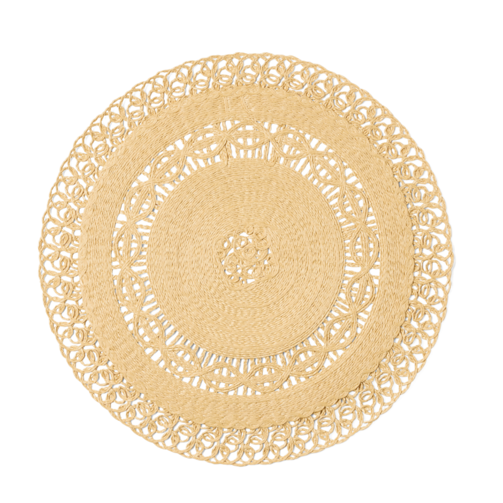 The Soleil placemat, crafted in natural rattan, adds a textural element to any table with alternating patterns that radiate from its center.
