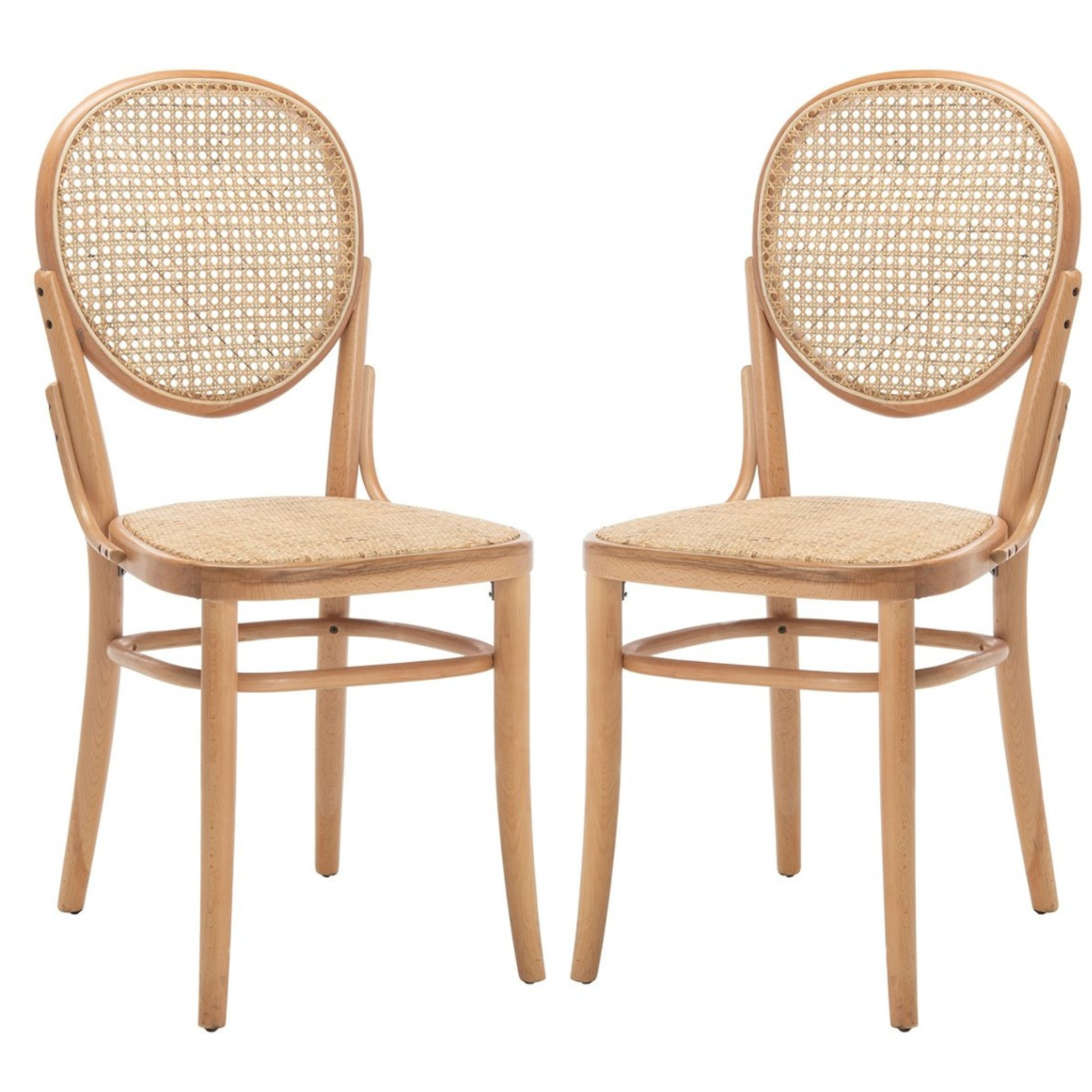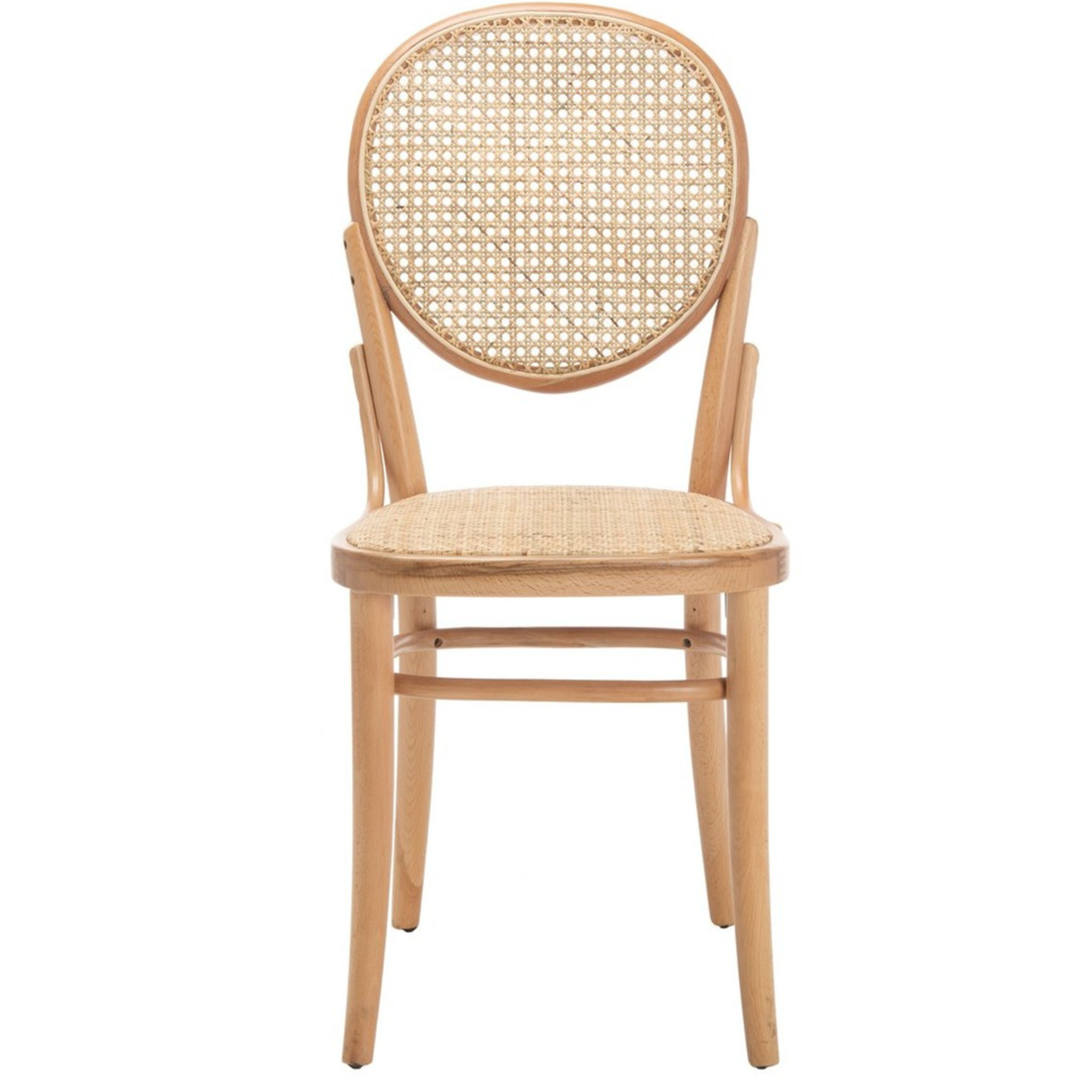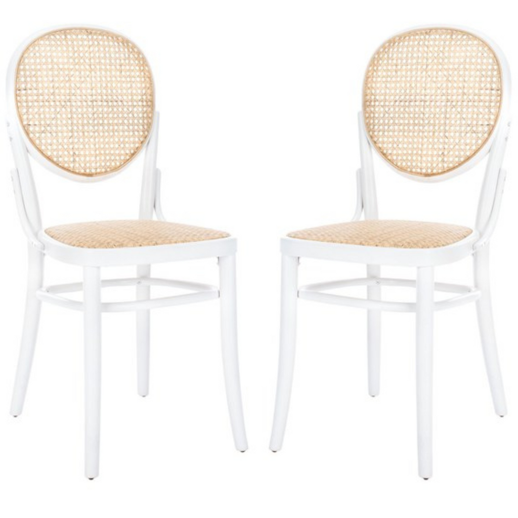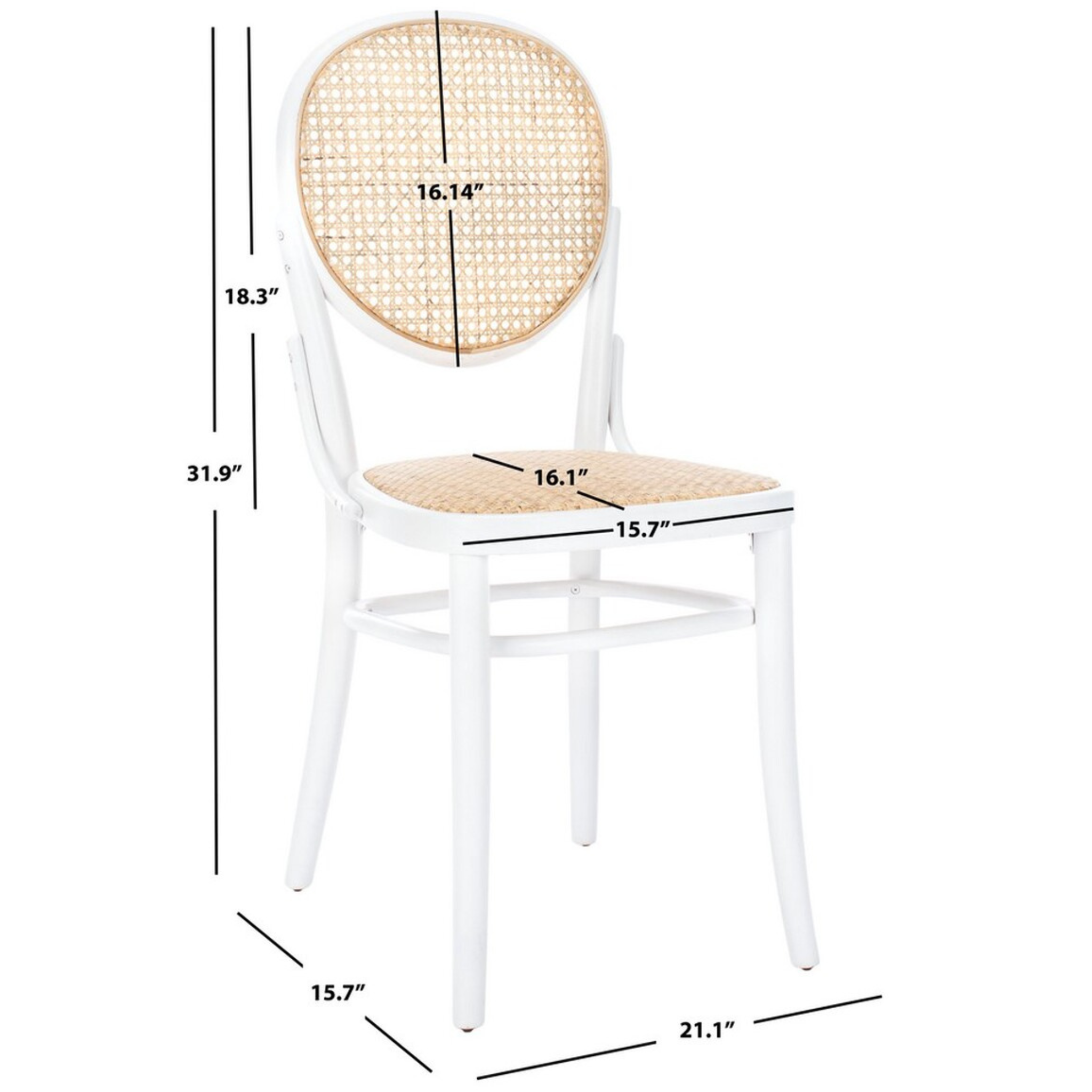 A true visual delight, this luxurious contemporary cane dining chair is crafted for the modern tastemaker. Featuring a graceful oval back that highlights its intricately woven natural cane, it's elegantly framed by the smooth, flowing curves of bright white wood. Click on images for greater detail.