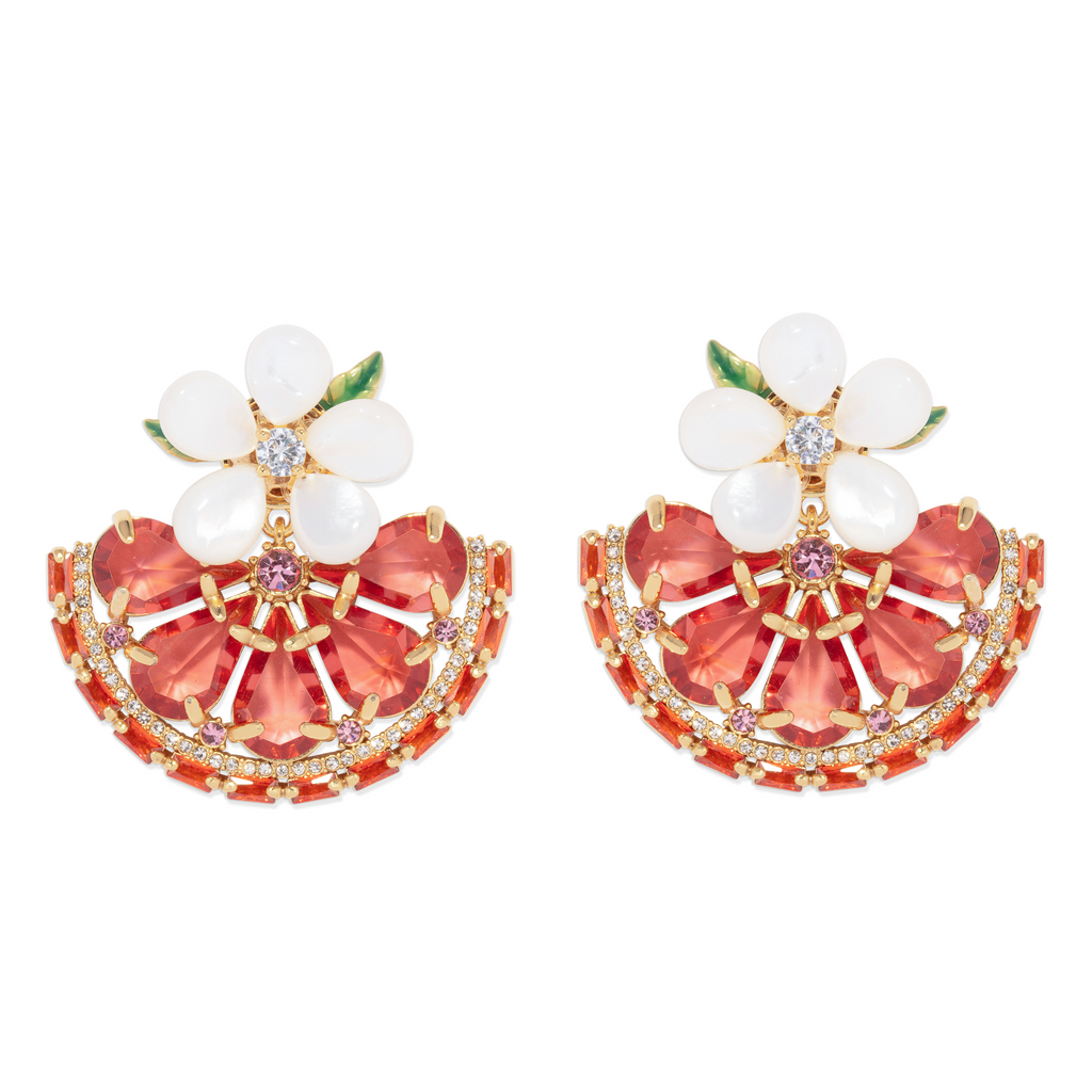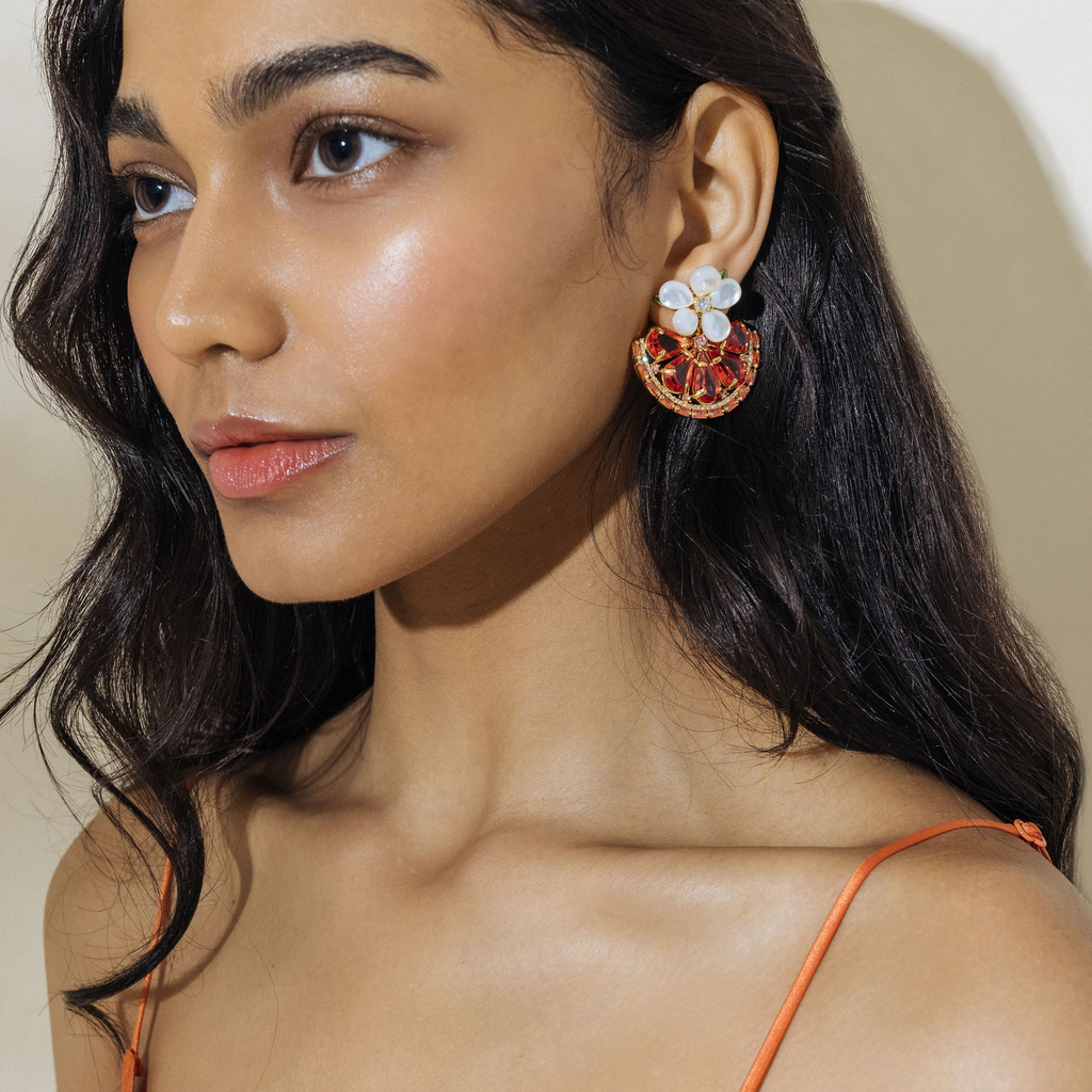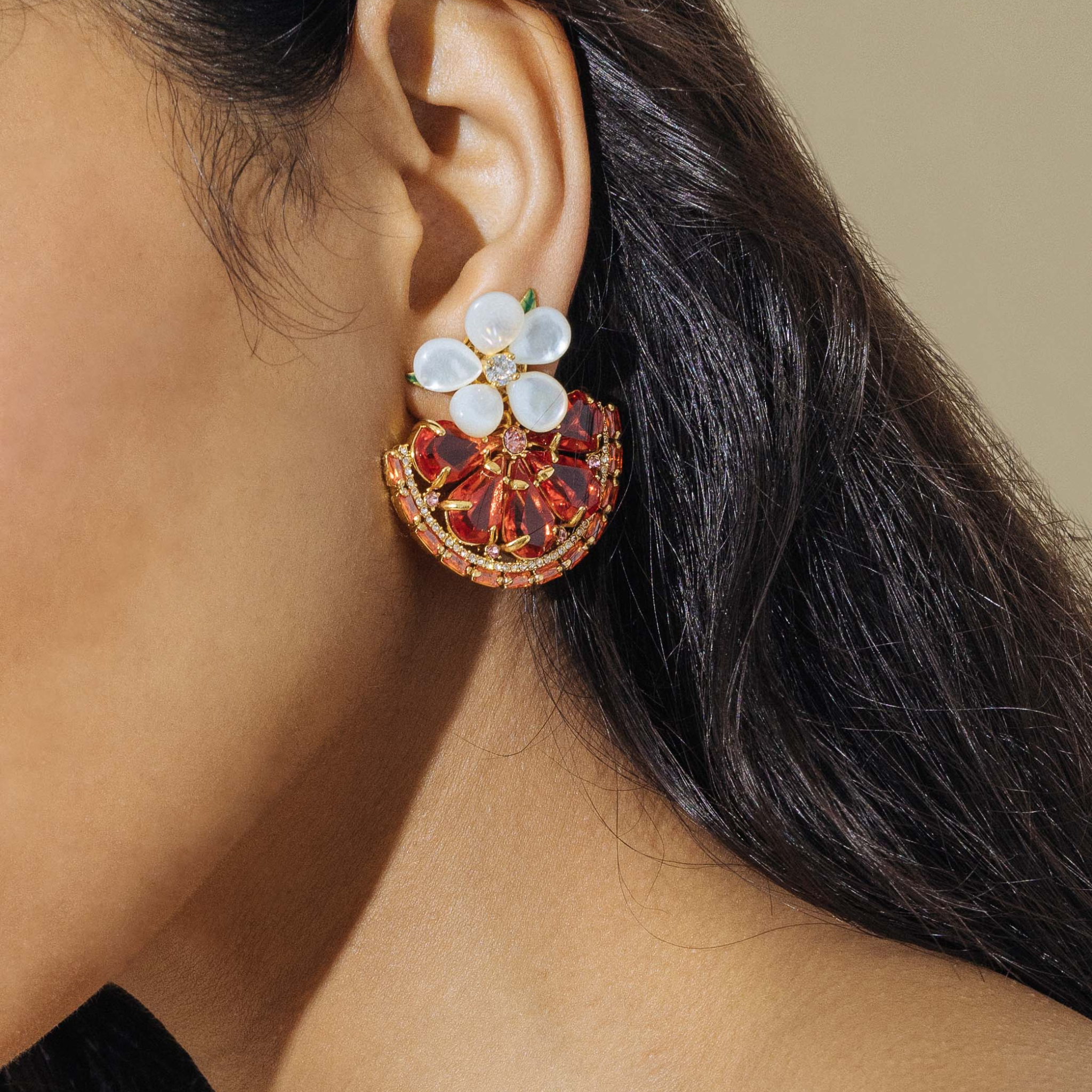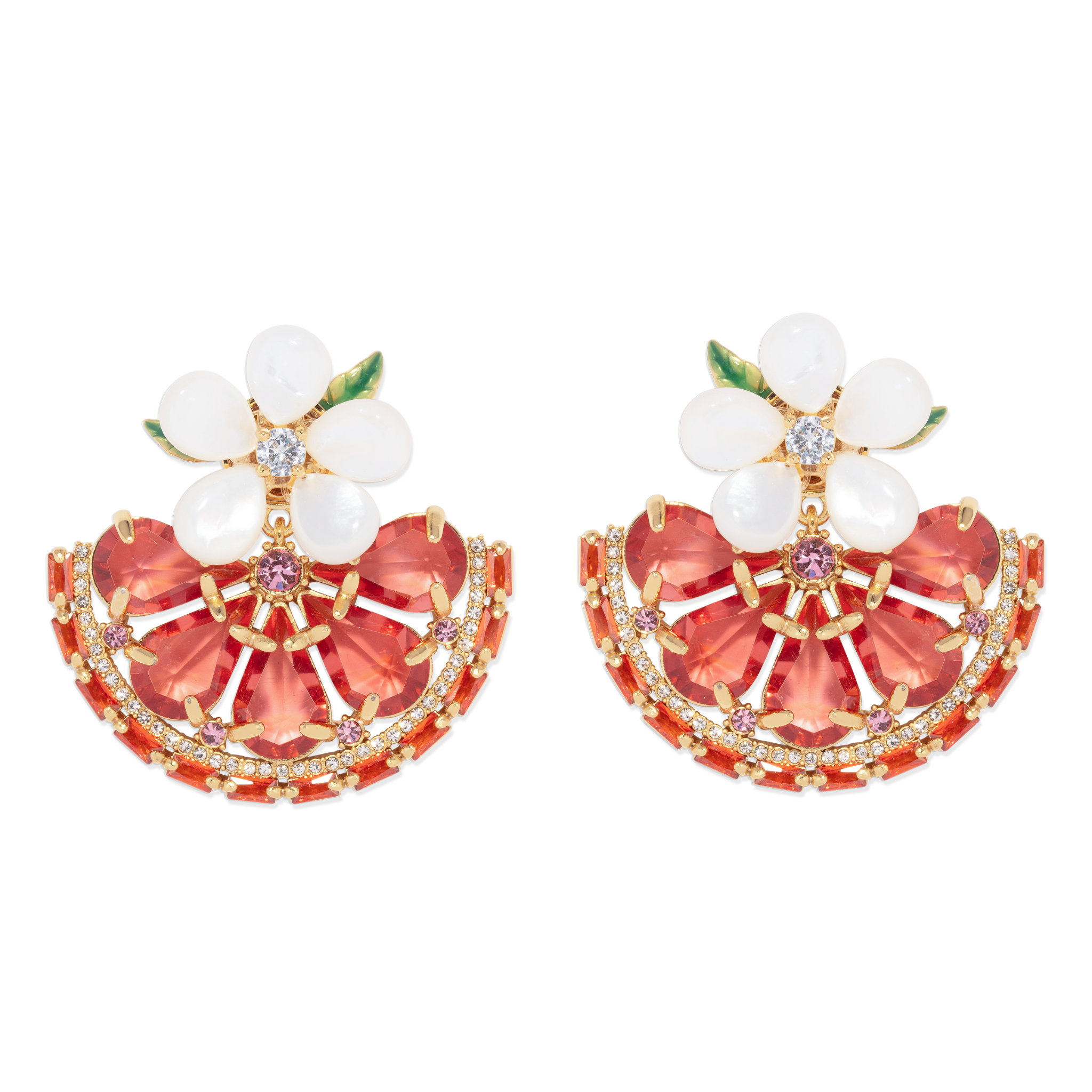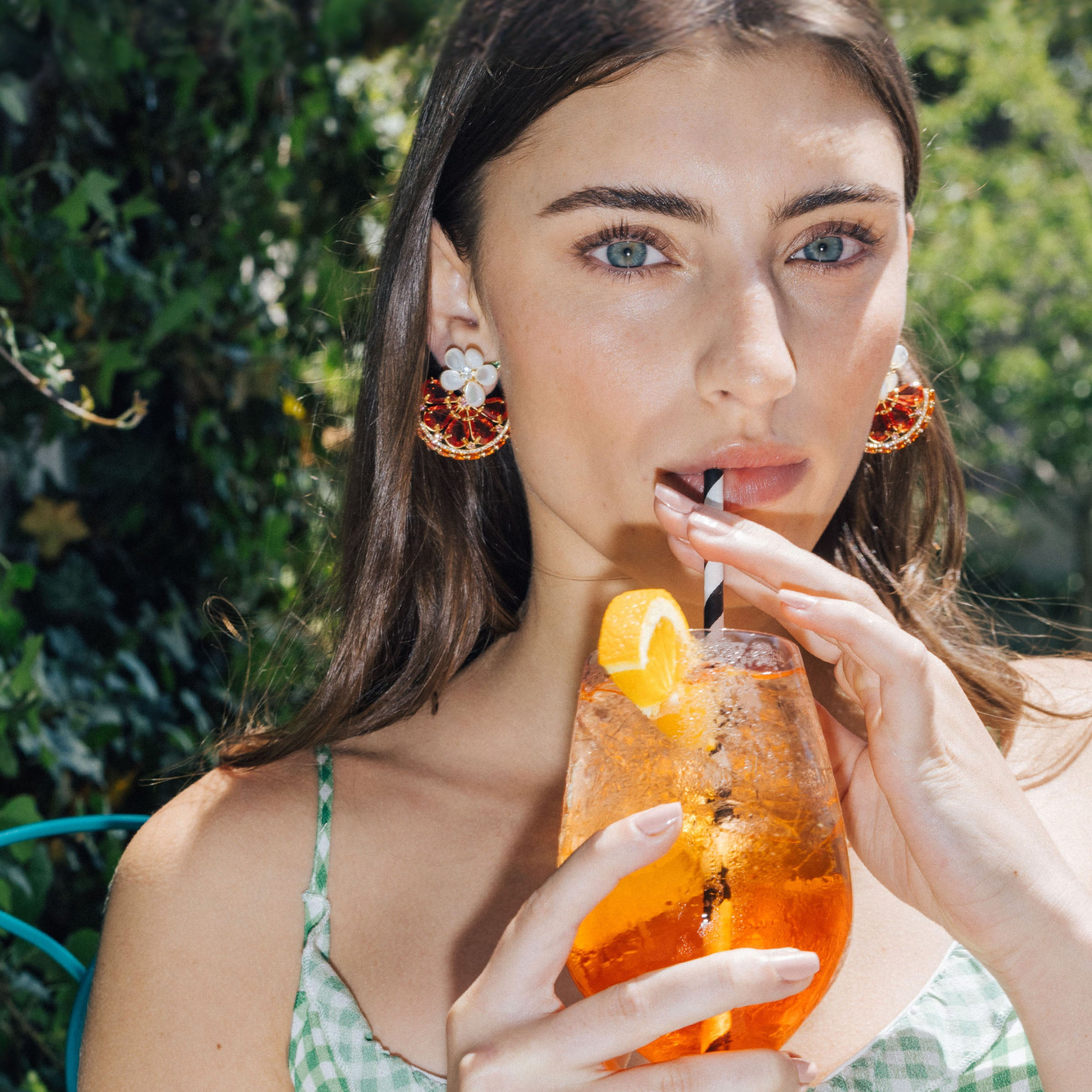 If you know our drink order on repeat all summer long, then you know what jewelry we’ll be wearing nonstop this season. Meet the absolutely irresistible “Spritz Please” Orange Slice Earrings inspired by the refreshing aperitivo we all know and love. Features genuine mother of pearl flower petals, hand-set glass and resin stones, a 24K shiny gold finish over brass with surgical steel posts.