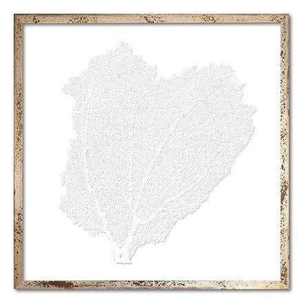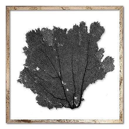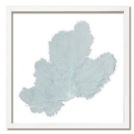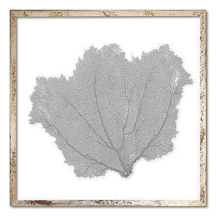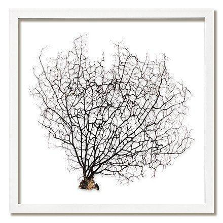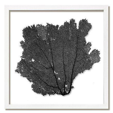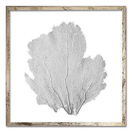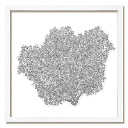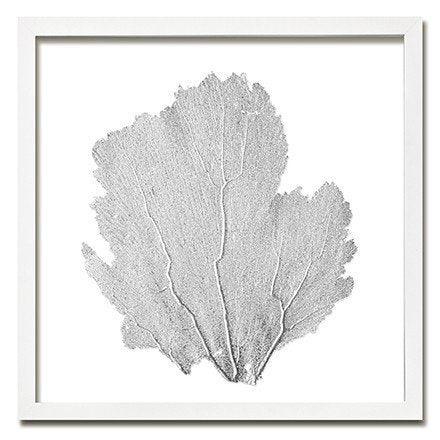 Sea fan suspended between glass. Your wall is the background! Available in a silver acid-washed frame and a white frame .