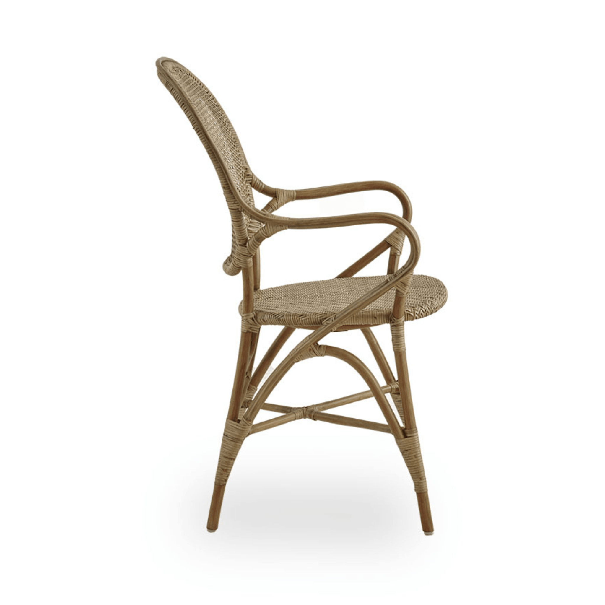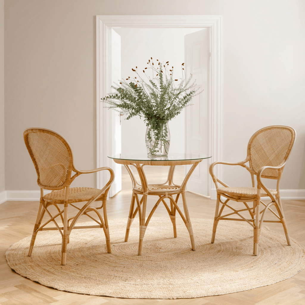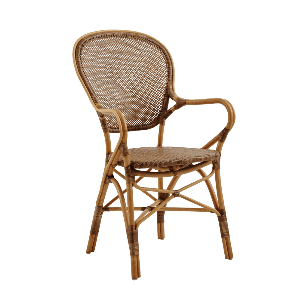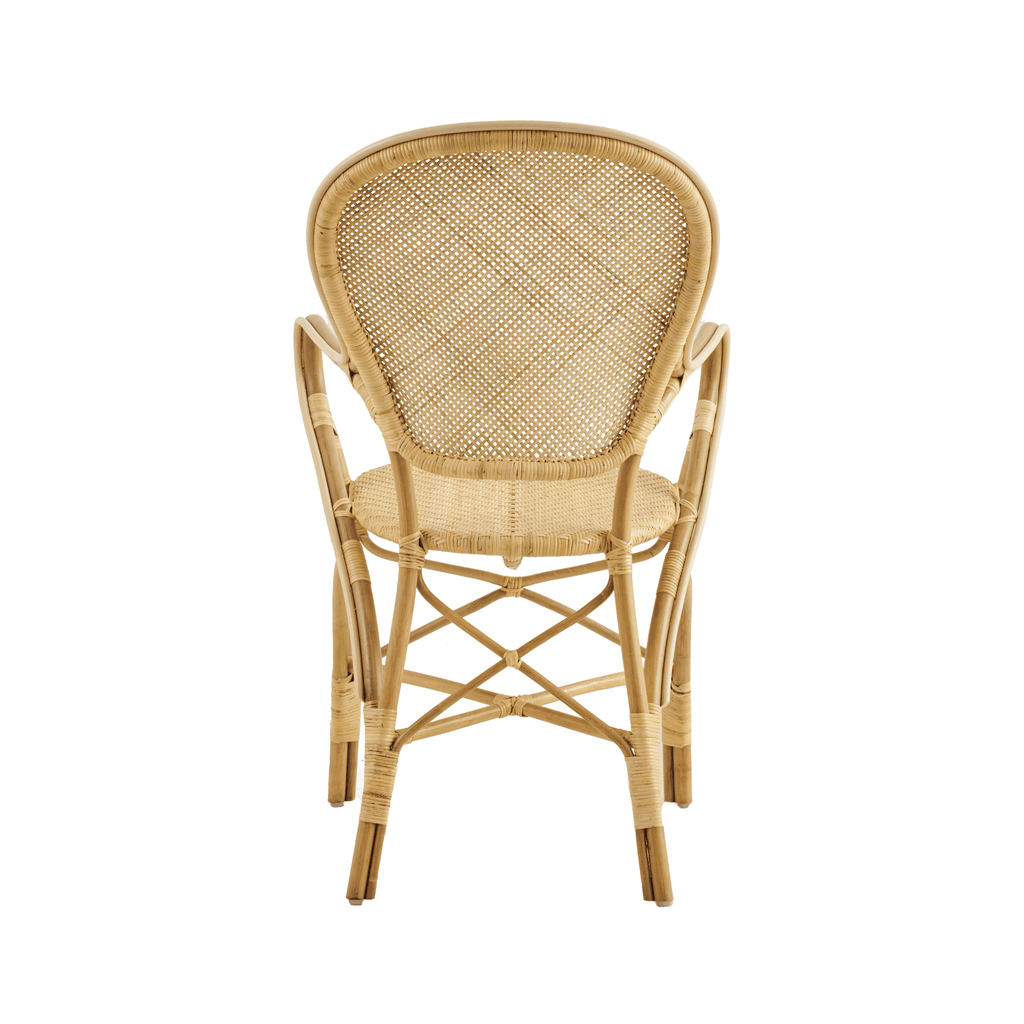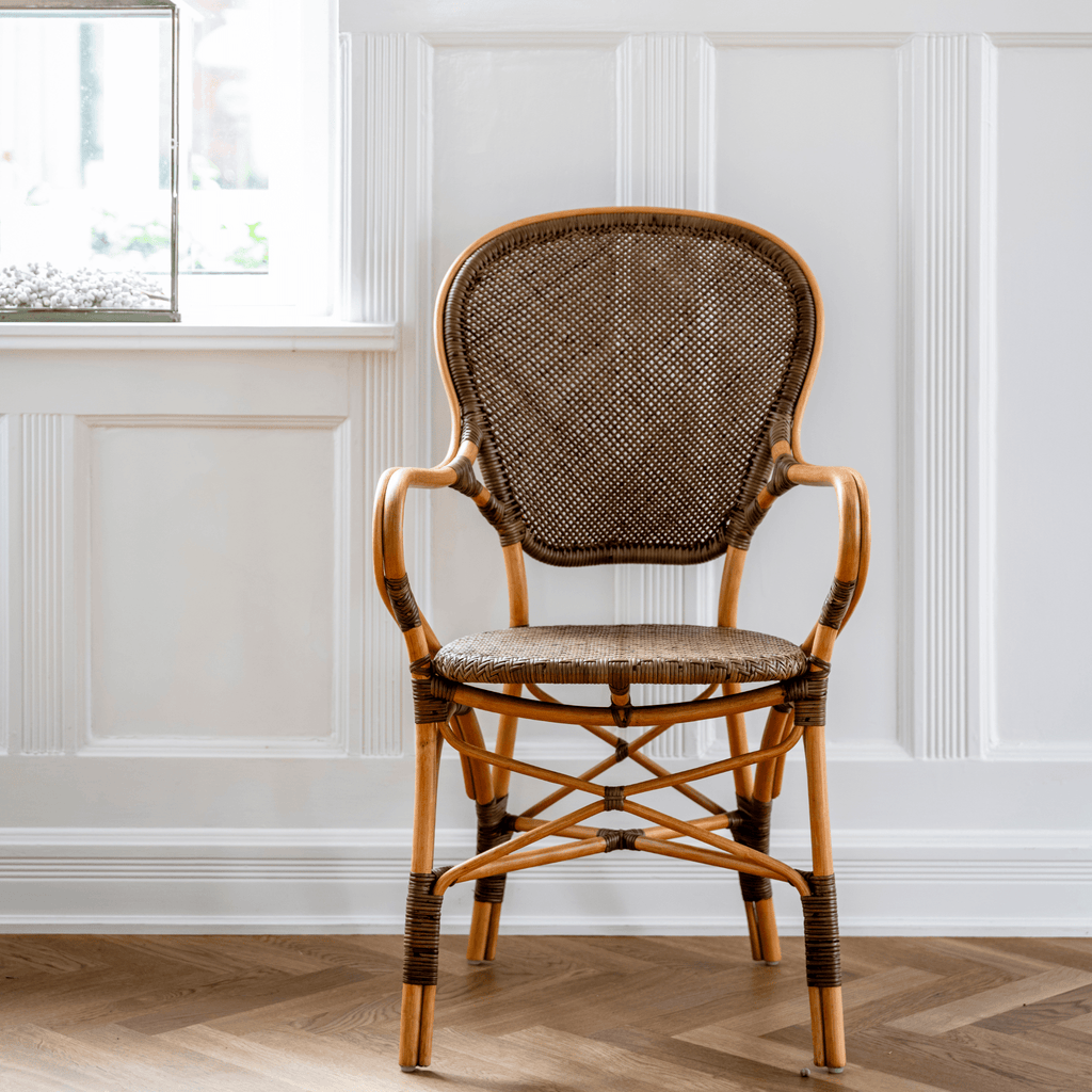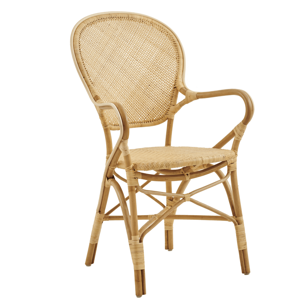 The Rossini Arm Chair is a classic stacking indoor bistro chair that has been part of the Sika Design line for over 50 years. For decades, the Rossini dining chairs have been a coveted choice for use in private homes, among restaurants, and at French bistros and cafes all over the world. It is handcrafted from natural rattan and is built to last as long as its timeless design.
