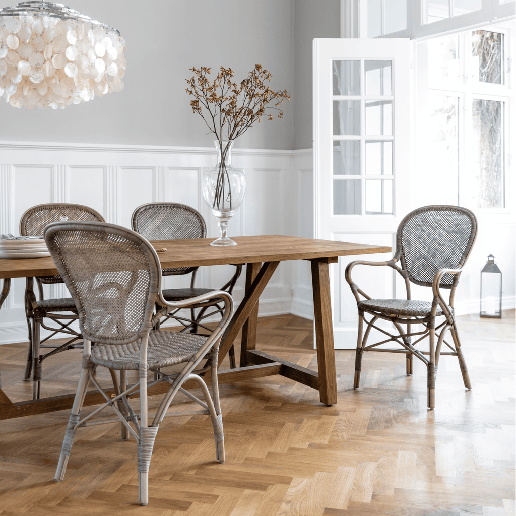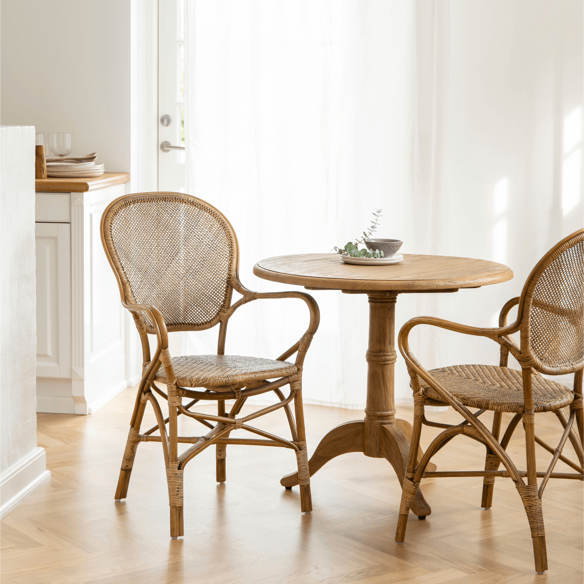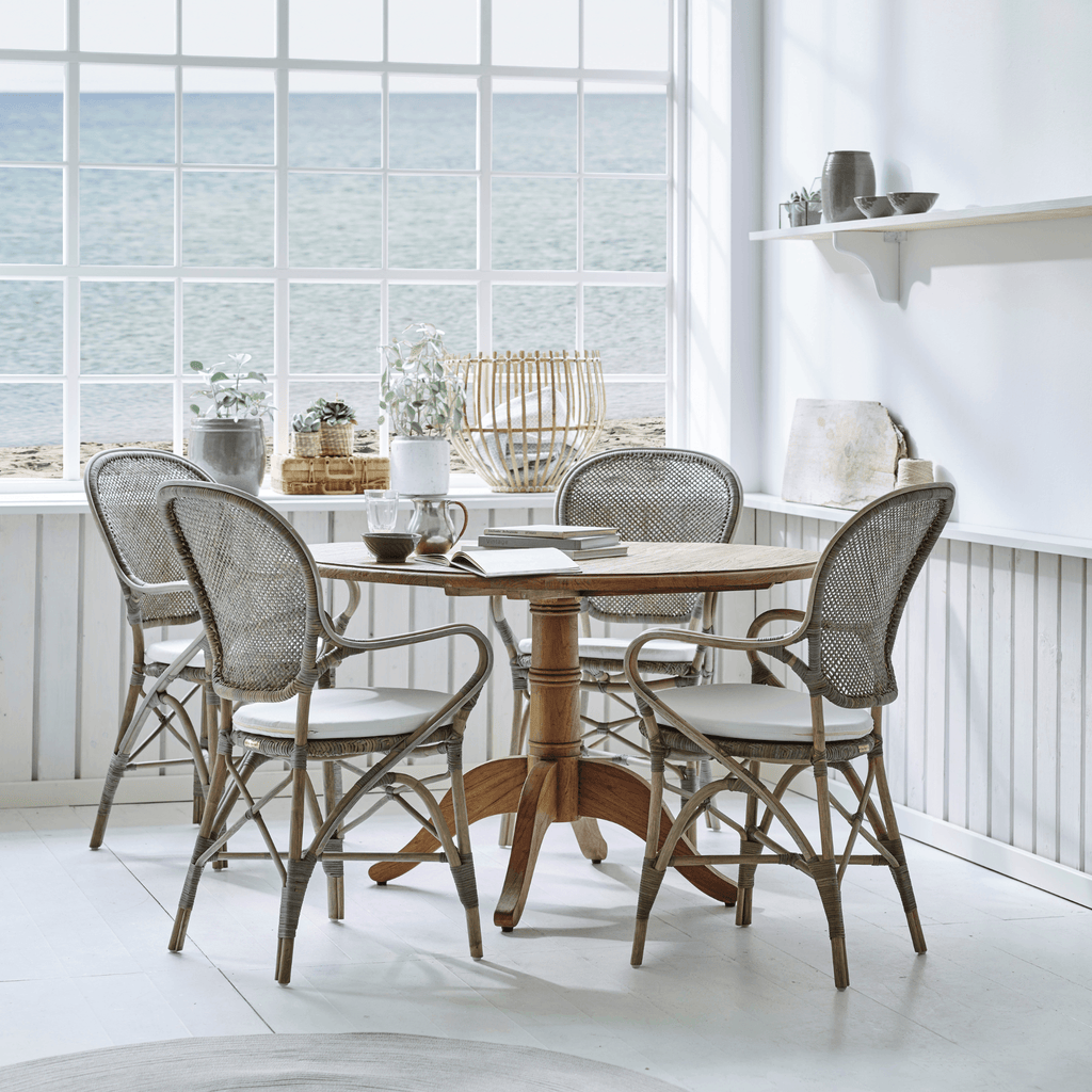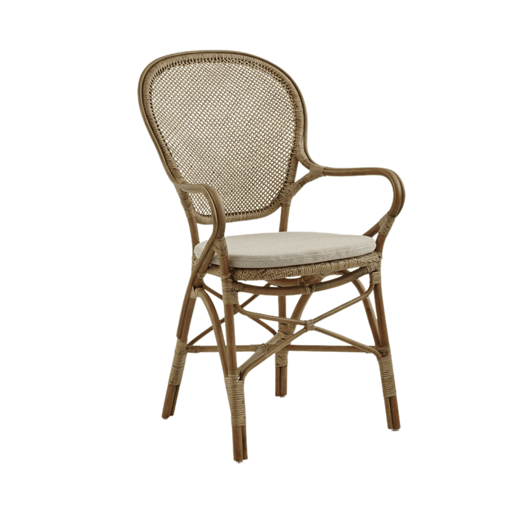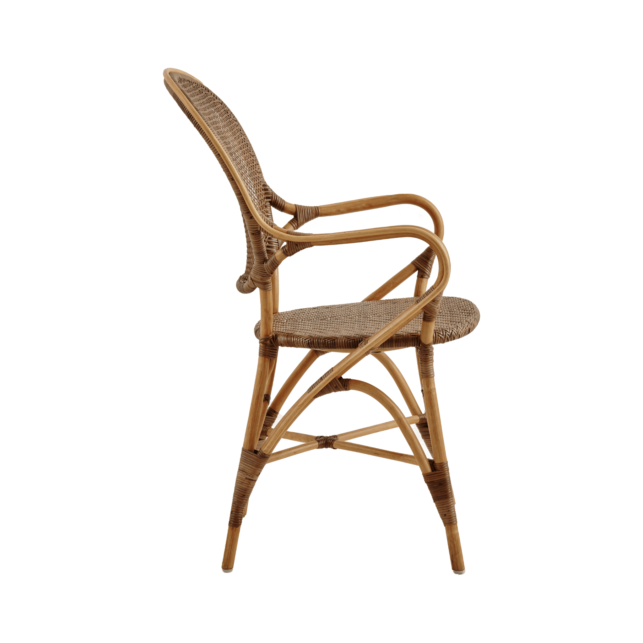 The Rossini Arm Chair is a classic stacking indoor bistro chair that has been part of the Sika Design line for over 50 years. For decades, the Rossini dining chairs have been a coveted choice for use in private homes, among restaurants, and at French bistros and cafes all over the world. It is handcrafted from natural rattan and is built to last as long as its timeless design.