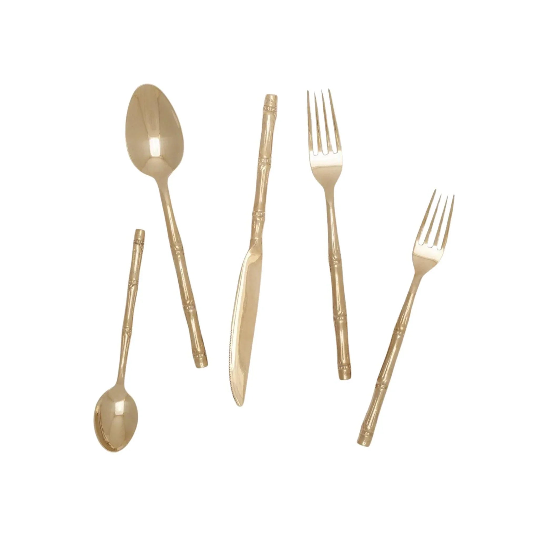 Liliana 5-Piece Bamboo Flatware Set in Polished Gold Finish