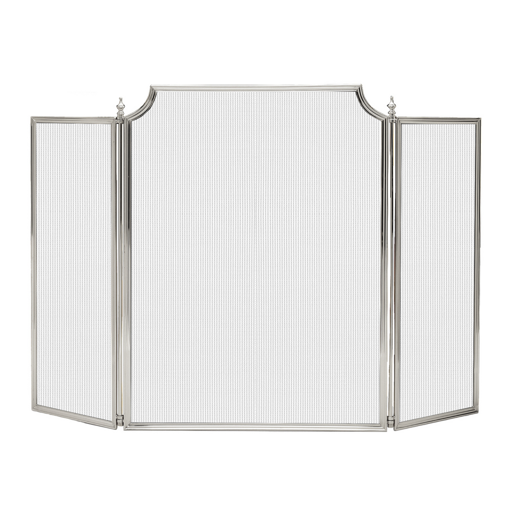 Polished steel or brass fireplace screen. This item is custom made to order and may not be returned.