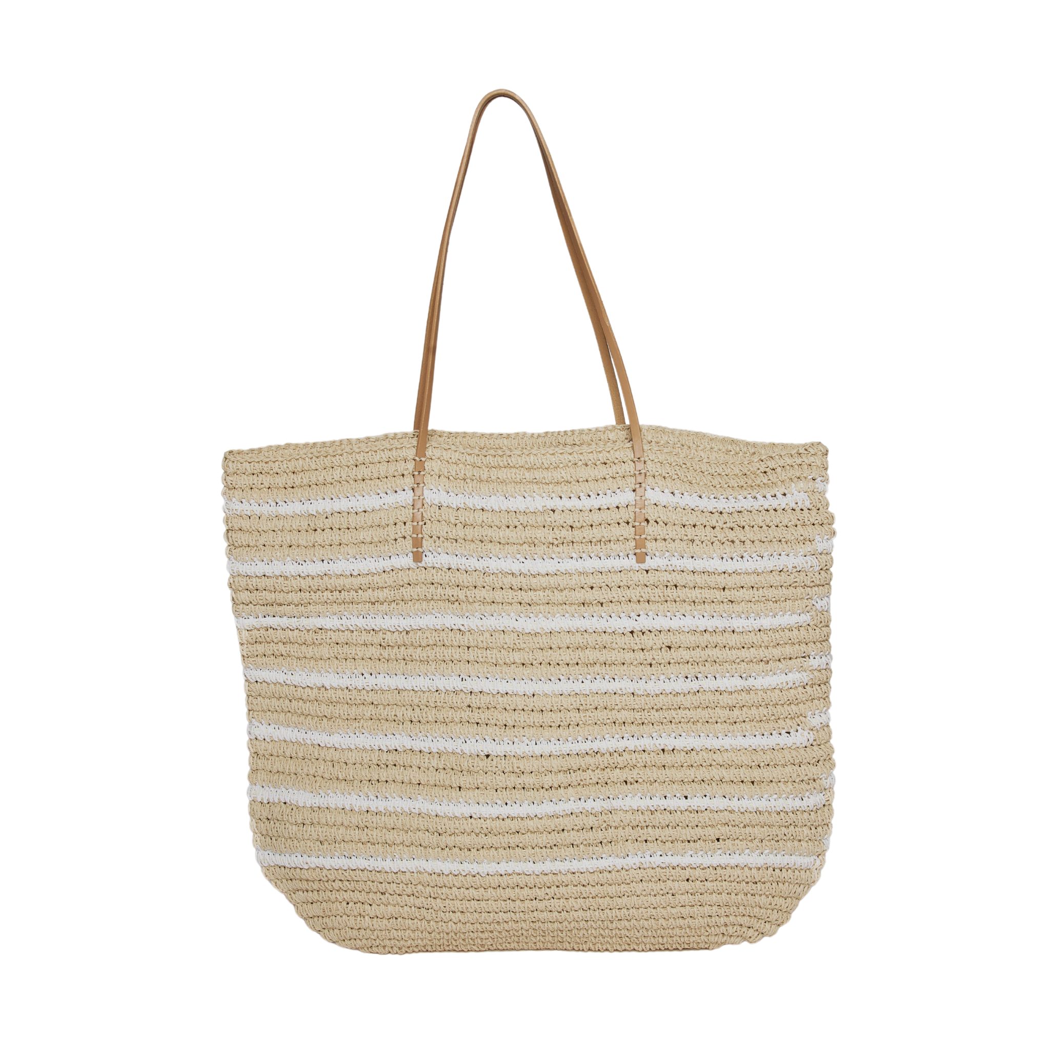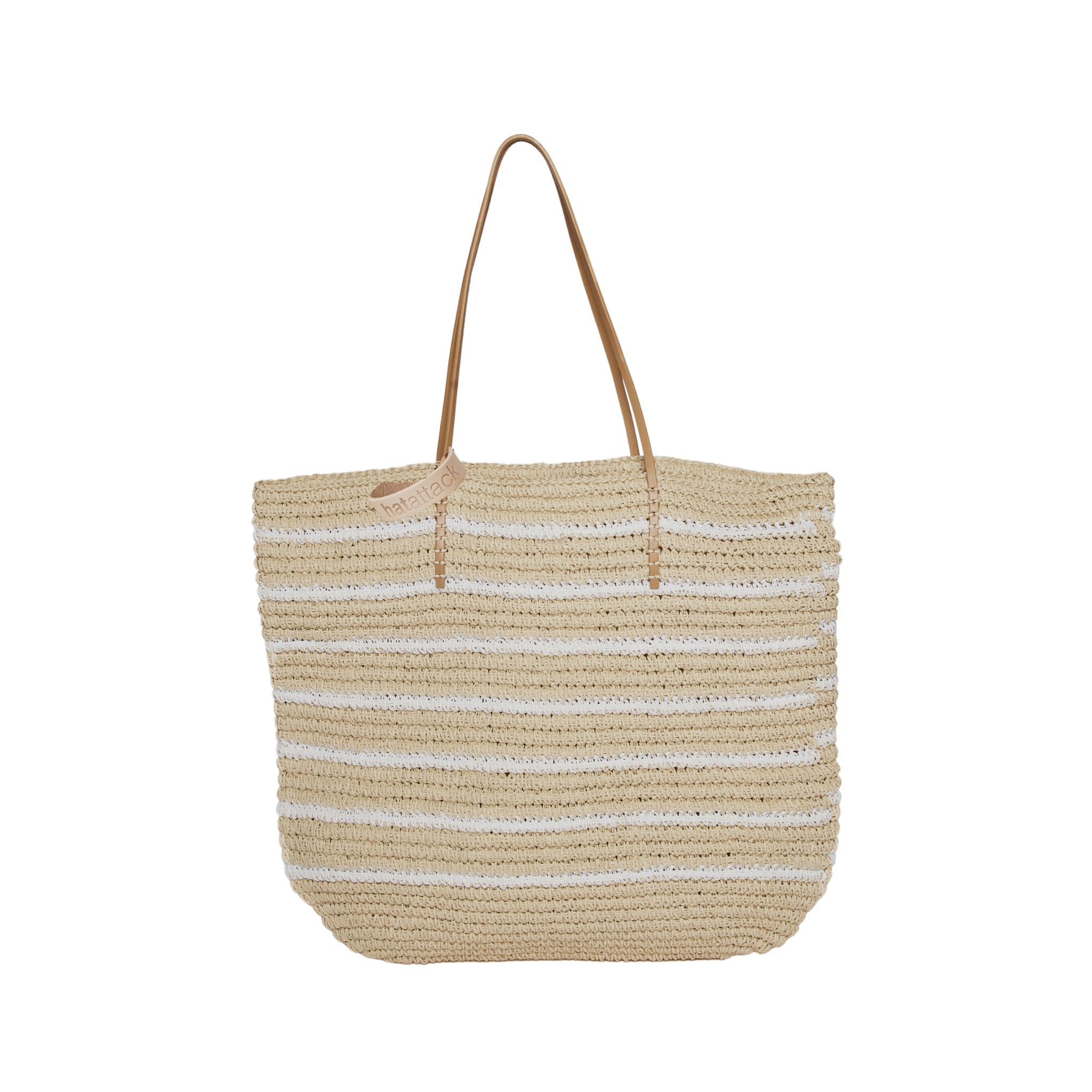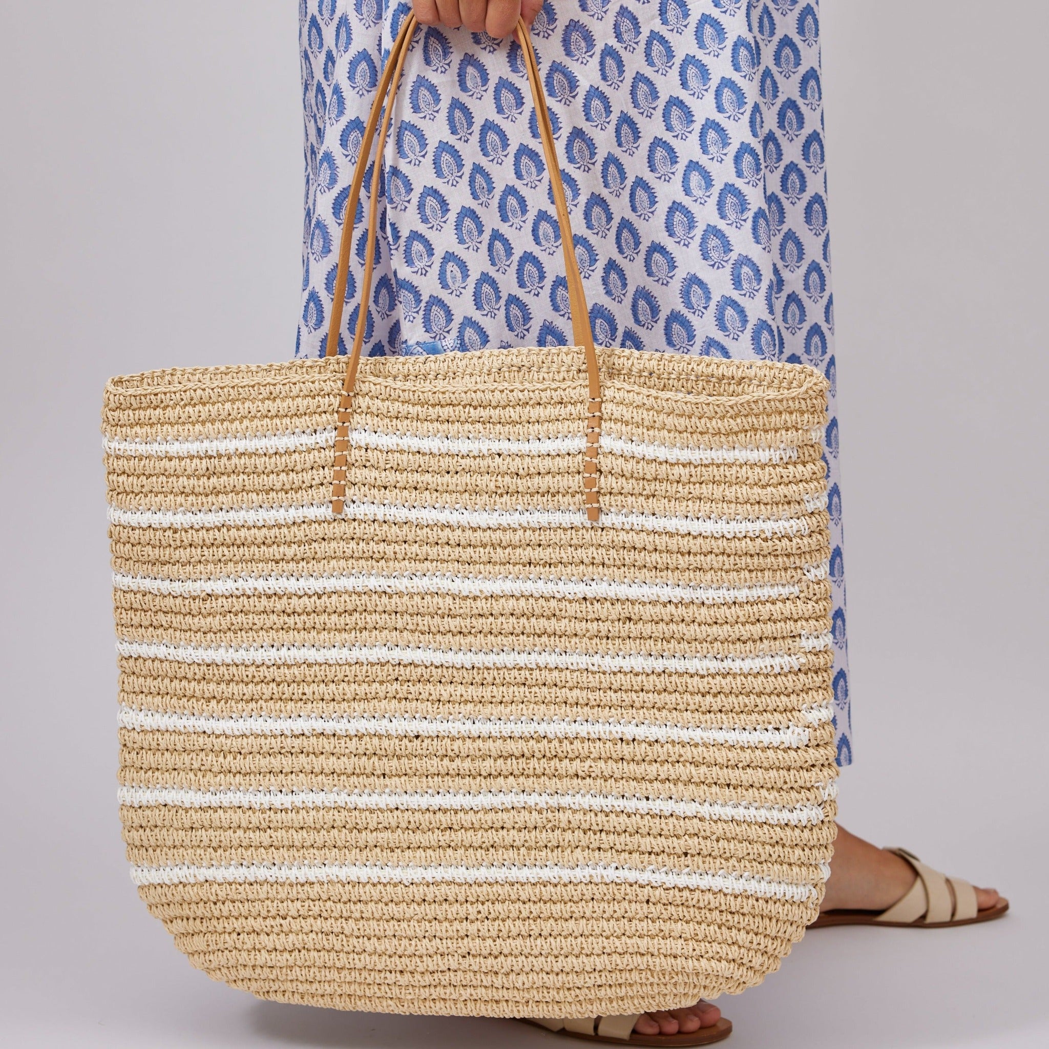 Our classic Stella Striped Tote with white stripes is sure to brighten up your spring and summer! Packable for easy travel and roomie for all of your goodies.