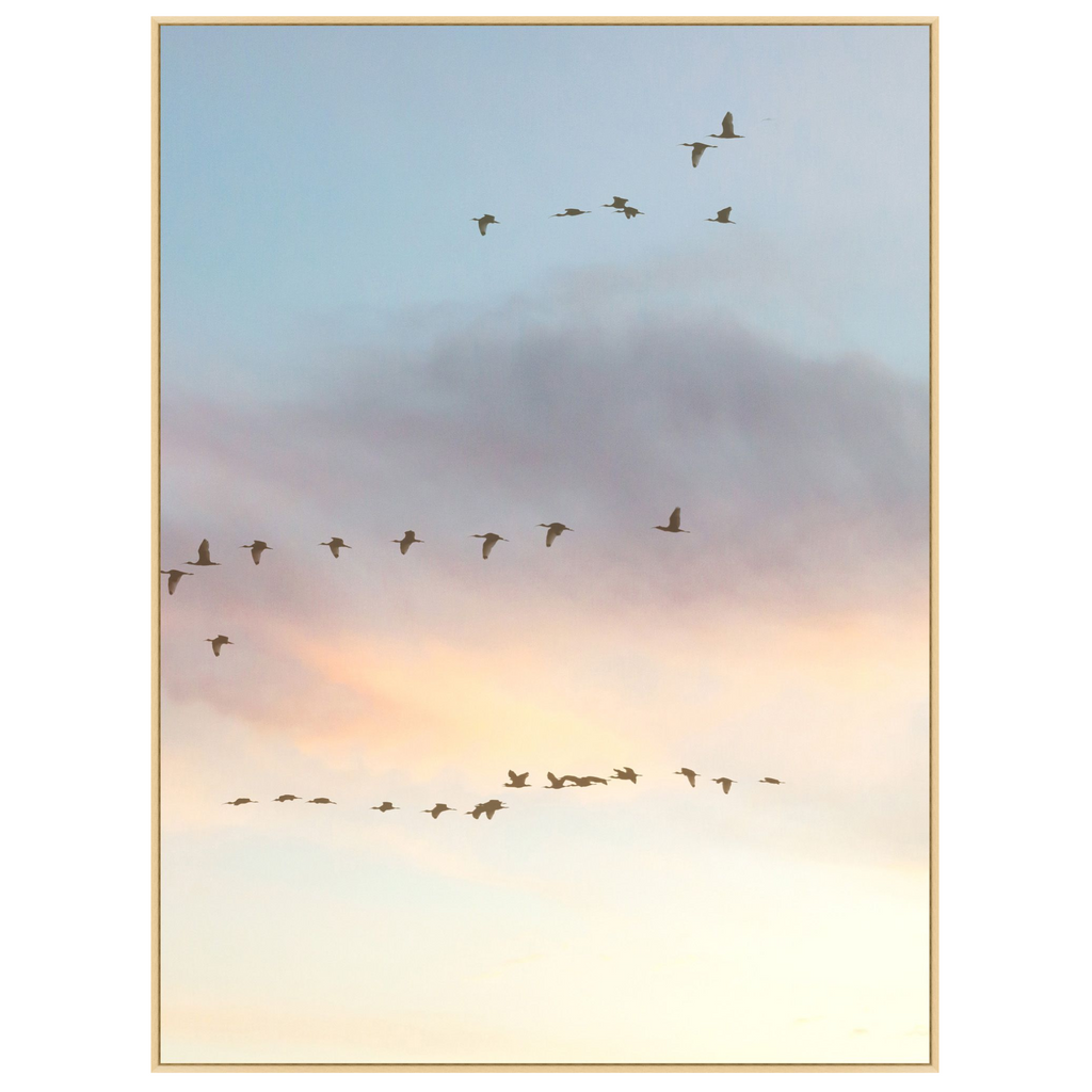 The Sunset Flock 2 Framed Wall Art features giclee on canvas, gallery wrapped. and a matte finish. Click images for greater detail.