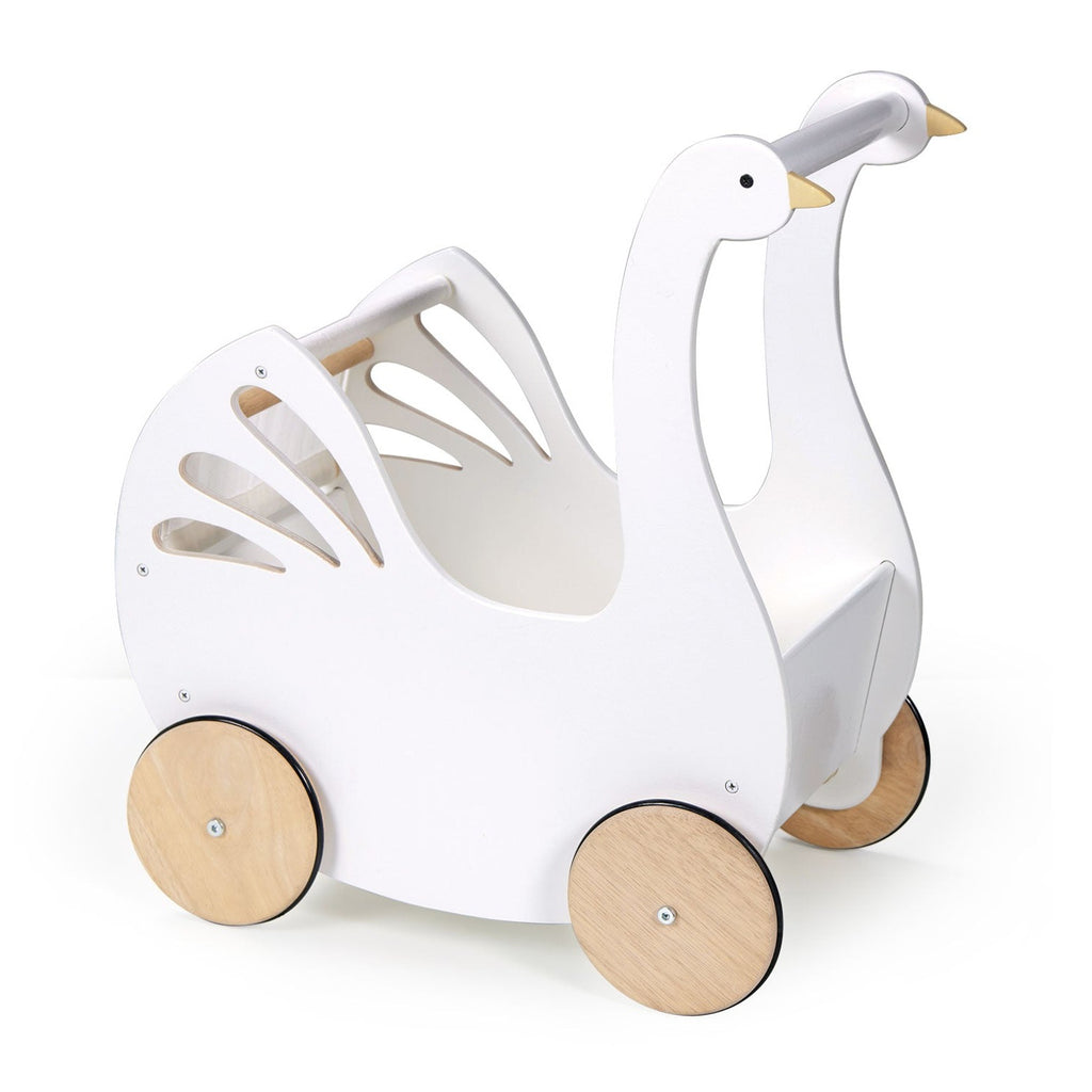 Rock your baby doll to sleep in this sweet little cot-style dolly bed. Painted in white with cutout features and natural wood rockers, this little bed is suitable for baby dolls or teddy bears. Comes complete with a blush coloured mattress, muslin coverlet and pillow, finished with a luxurious frill. To extend playtime we have included a wooden baby bottle, baby cup and muslin bib.