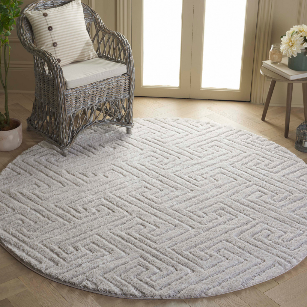 Tahoe Ivory Greek Key Pattern Shag Area Rug
