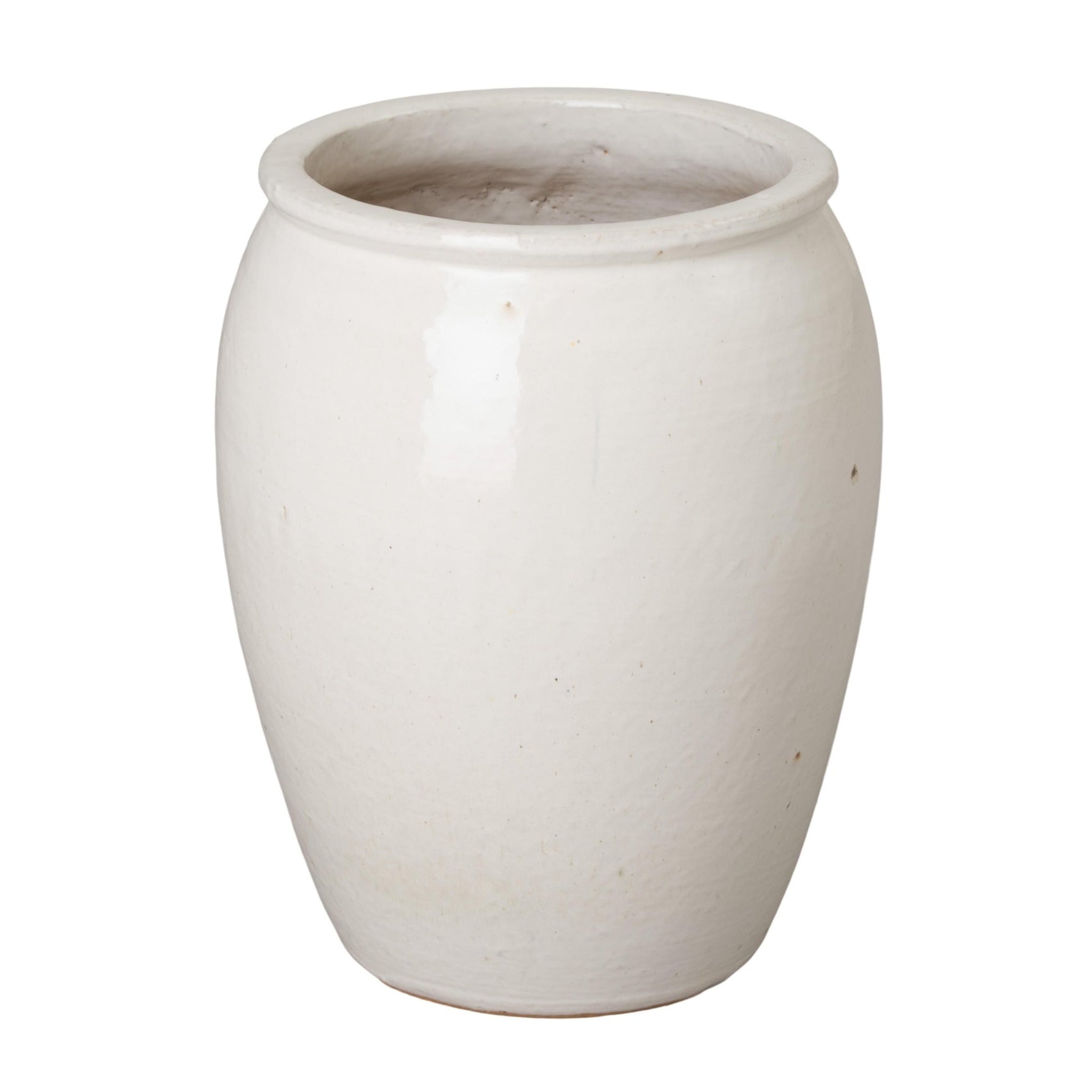 Handcrafted from durable red clay with a sleek white glaze. It's weather-resistant construction includes a built-in drainage hole to ensure your plants stay healthy and vibrant in a stylish, high-quality vessel.