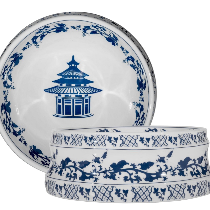 Add a touch of elegance to your pet’s mealtime with the Blue and White Porcelain Pet Bowl, featuring a stunning pagoda screen design and a delicate floral border. Crafted from high-quality porcelain, this bowl combines durability with classic beauty, making it a sophisticated choice for your furry friend.