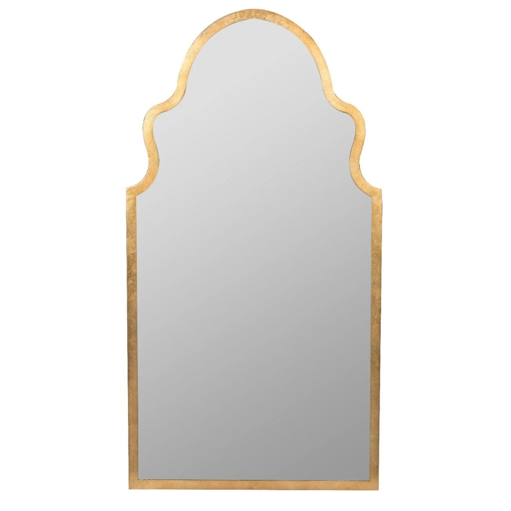 This gold-leaf metal framed mirror adds a chic touch to any home! The curves of this mirror are timeless and fashionable.
