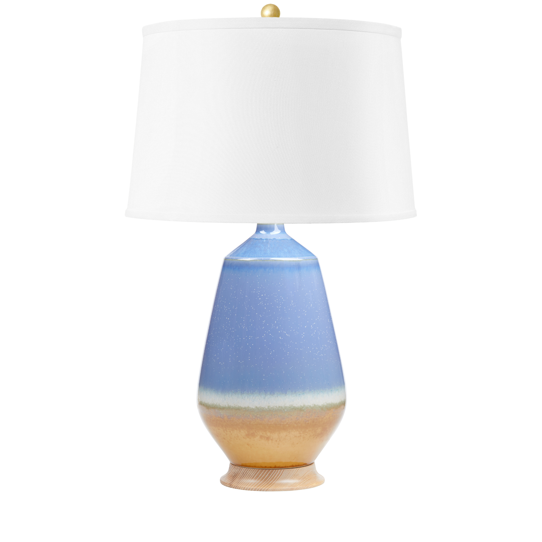 The Tupelo Lamp has soft and feminine curves highlighted by a rich blue & brown glaze. Highly sophisticated, this lamp immediately adds dramatic dimension to a space. With its traditional baluster form and its hand-leafed wooden base and ball finial, the Tupelo would beautifully anchor a minimalistic living room or a moody bedroom. Perfect for those loving the Hollywood Regency revival or anyone who wants to add a dash of romantic depth to their design.