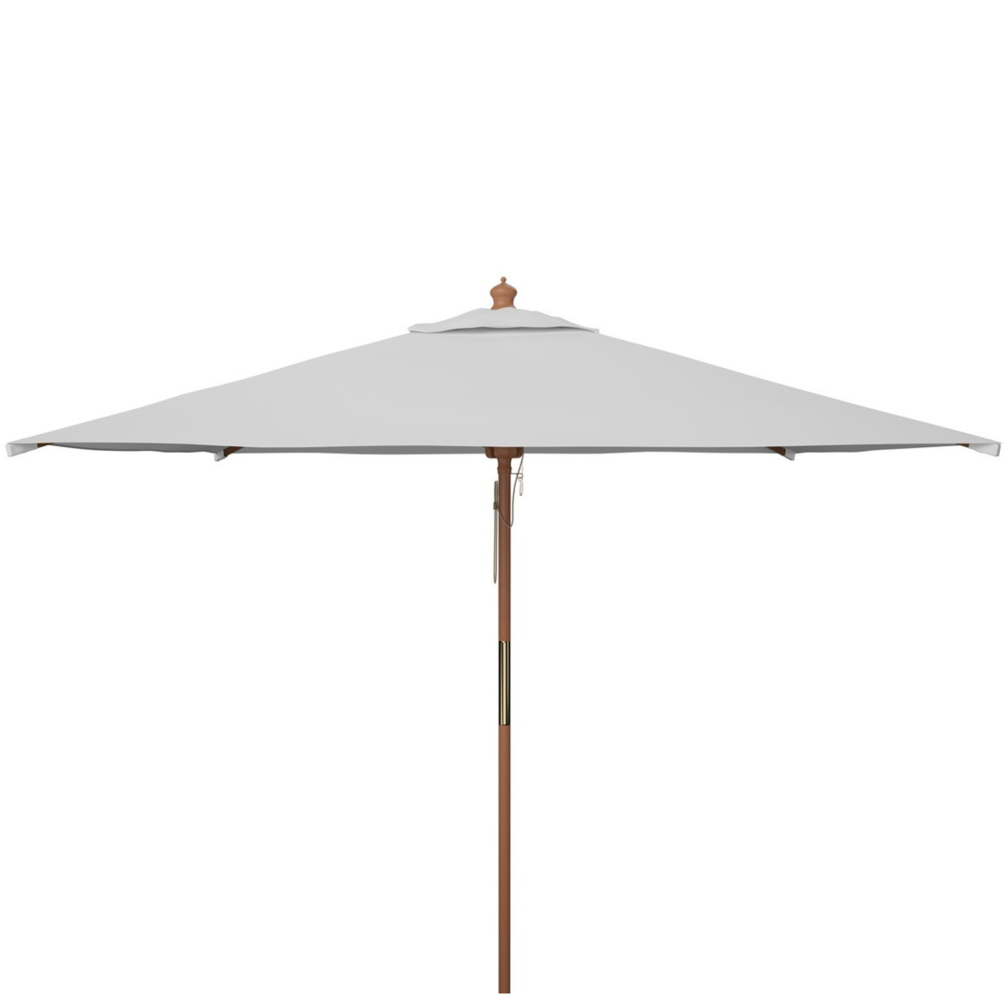 Transform any outdoor space into a shaded haven for relaxation or entertaining with this Velop market umbrella. With its square canopy, this umbrella offers a modern, versatile design that suits any setting. The smooth pulley system ensures easy operation every time. Coated for enhanced durability, the canopy pairs beautifully with the elegant wooden frame in a classic white hue. Built to last, this umbrella provides reliable sun protection and shields you from light rain. Click on images for greater detail.