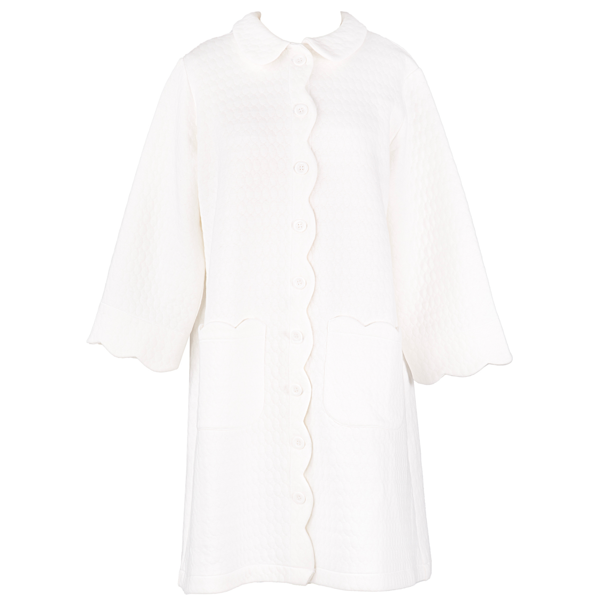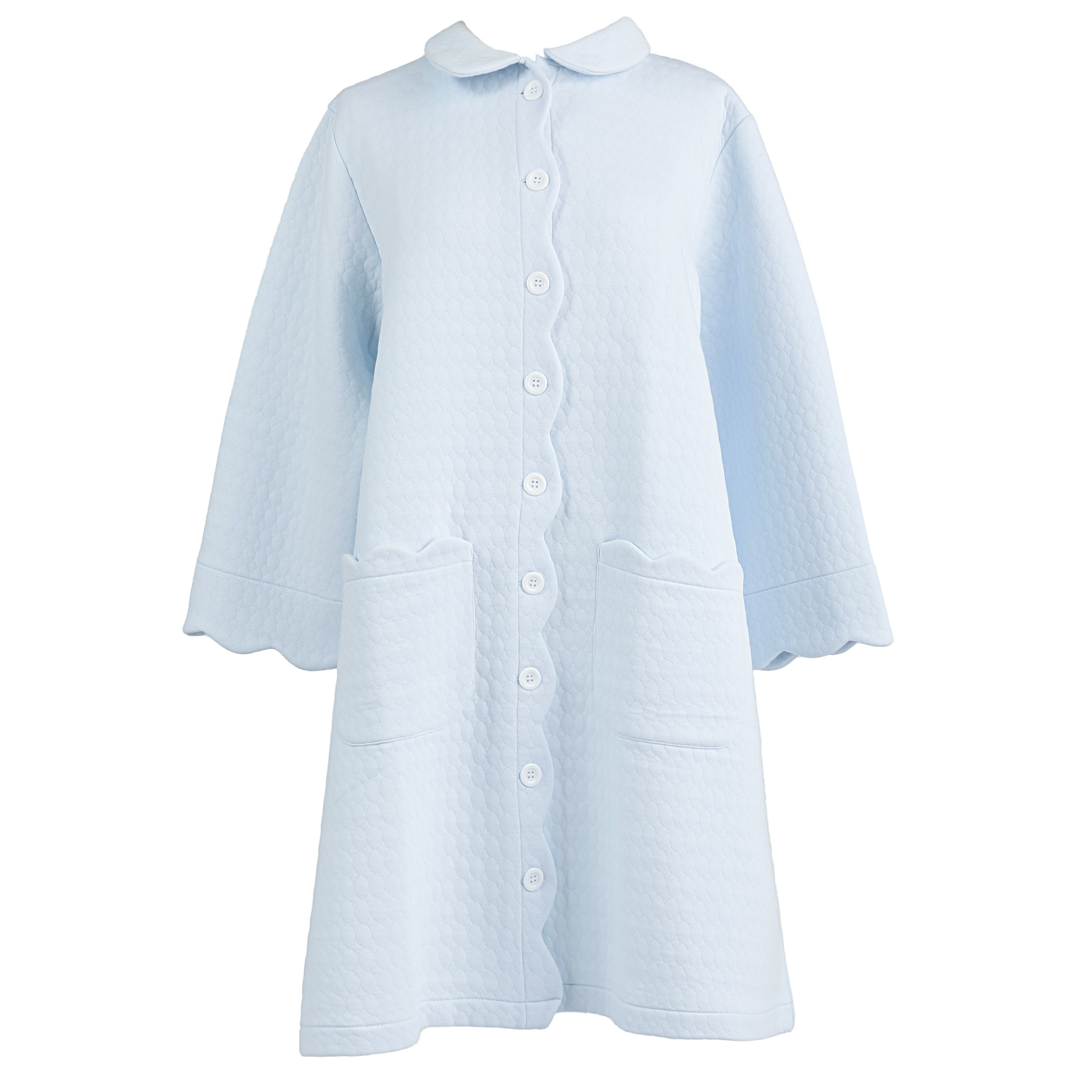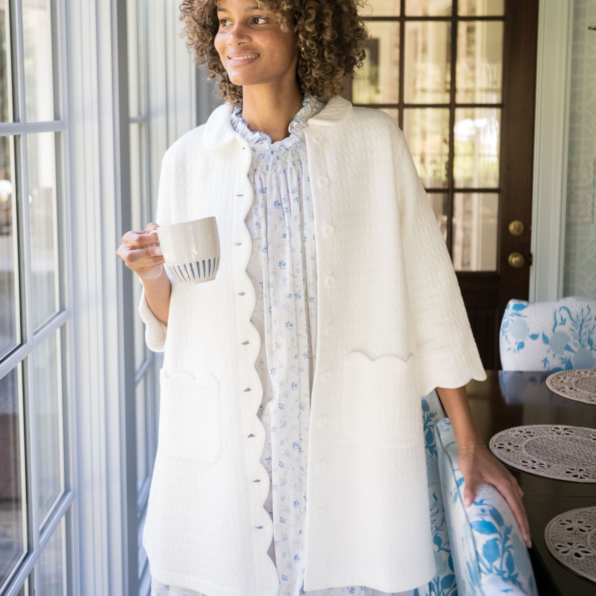 Wrap yourself in luxury with the Vivian Cotton Robe, a testament to comfort and style. Crafted from quilted cotton, this robe boasts exquisite details, including a button-front with scalloped edges, gracefully scalloped sleeves, and a charming round Peter Pan collar. With a flattering length that hits just above the knee, this robe is the perfect blend of sophistication and relaxation, making every moment of self-care a truly indulgent experience.