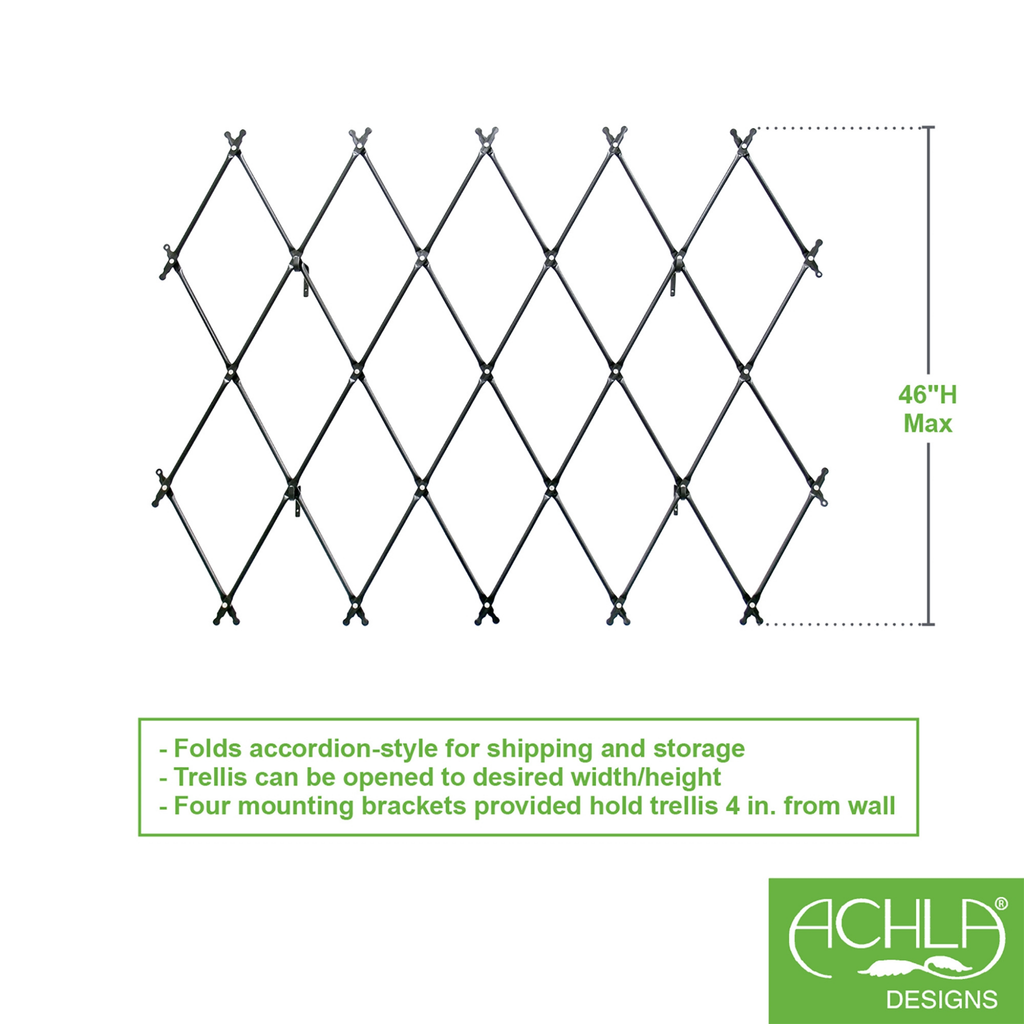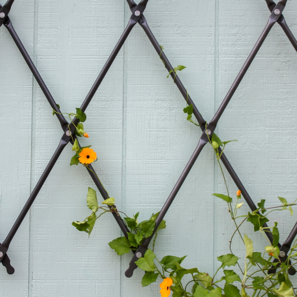 The Wall Mounted Lattice Trellis, with expanding adjustable width, is versatile for many spaces. It is ideal for seasonal use as a privacy screen or support for annual vegetables and flowers because it can be repositioned easily and folded, “accordion-style'' for storage.