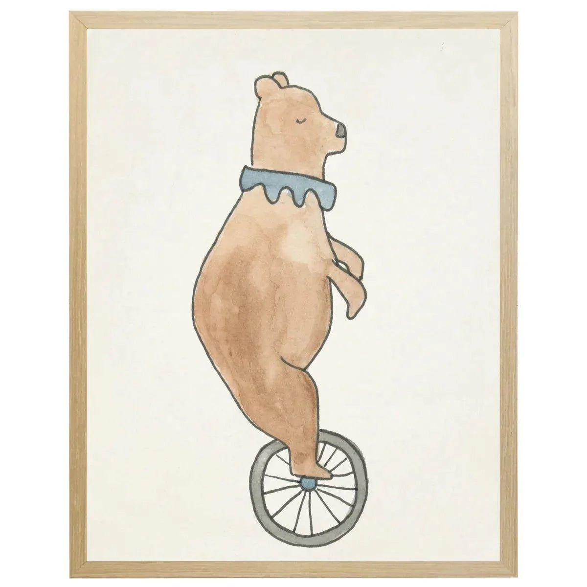 Watercolor Circus Bear on Unicycle Children’s Framed Wall Art
