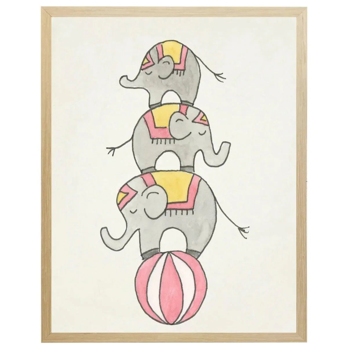 Watercolor Elephant Trio on Circus Ball Children’s Framed Wall Art