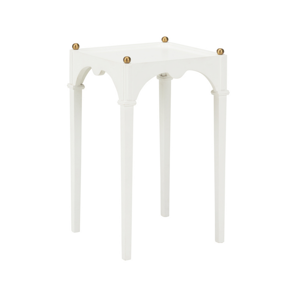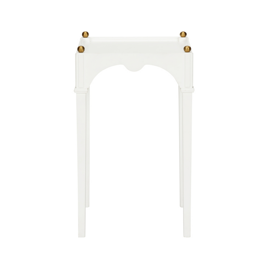 The Kent Drink Table is a fresh take on an 18th century Regency scatter table. With its cleaned up lines and brass ball details it's perfect for any style interior. Available in a range of finishes. Designed by Jamie Merida.