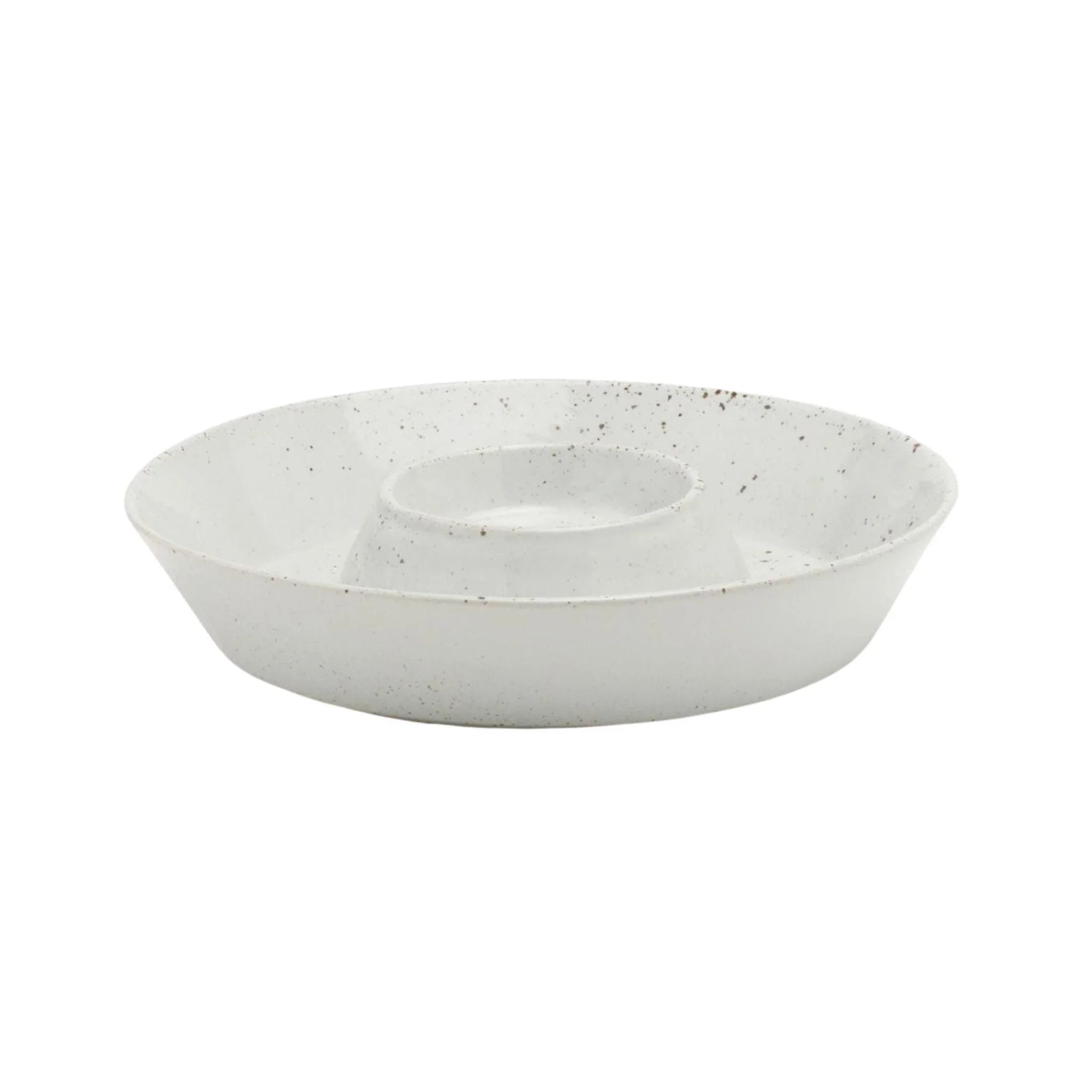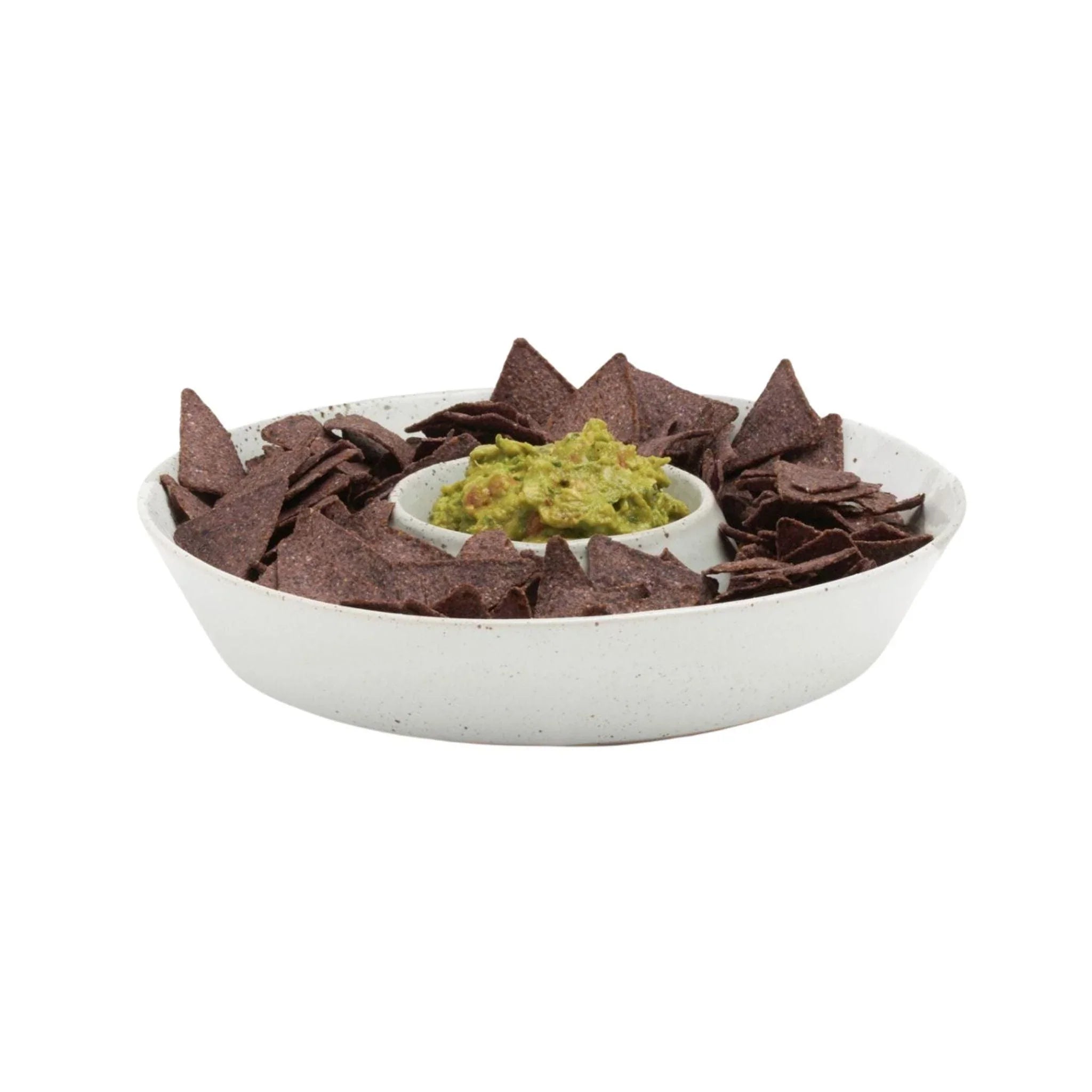 White Salt Glaze Chip and Dip Stoneware Bowl