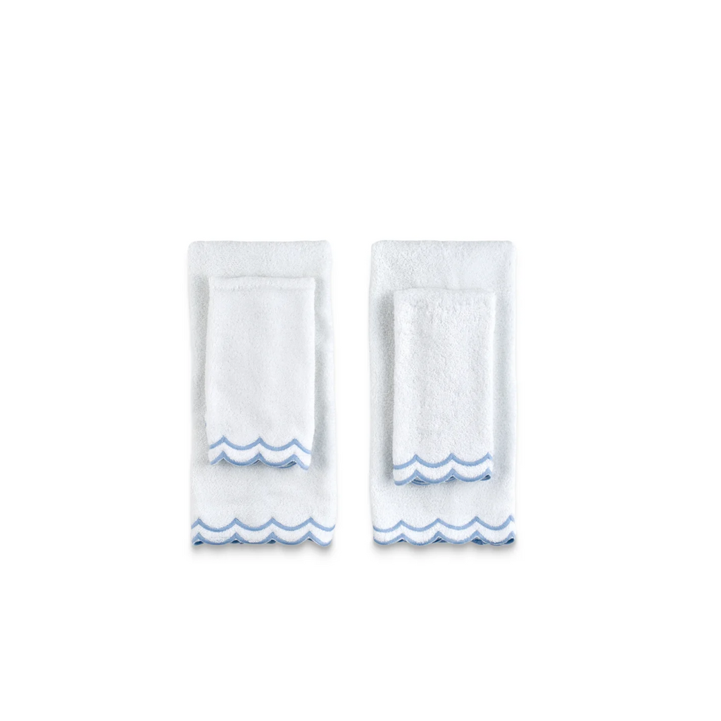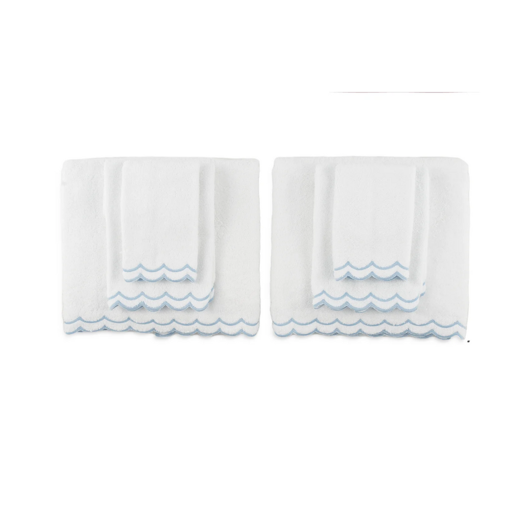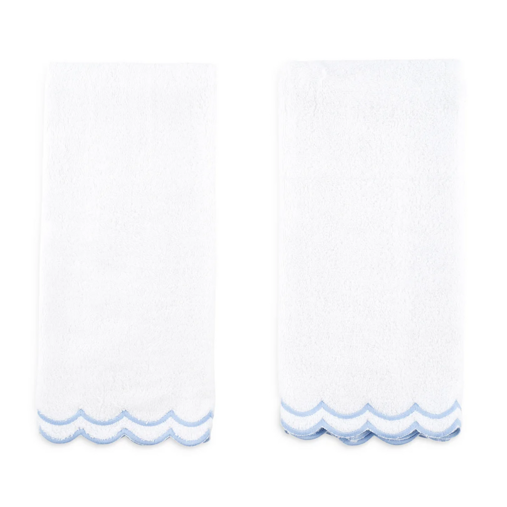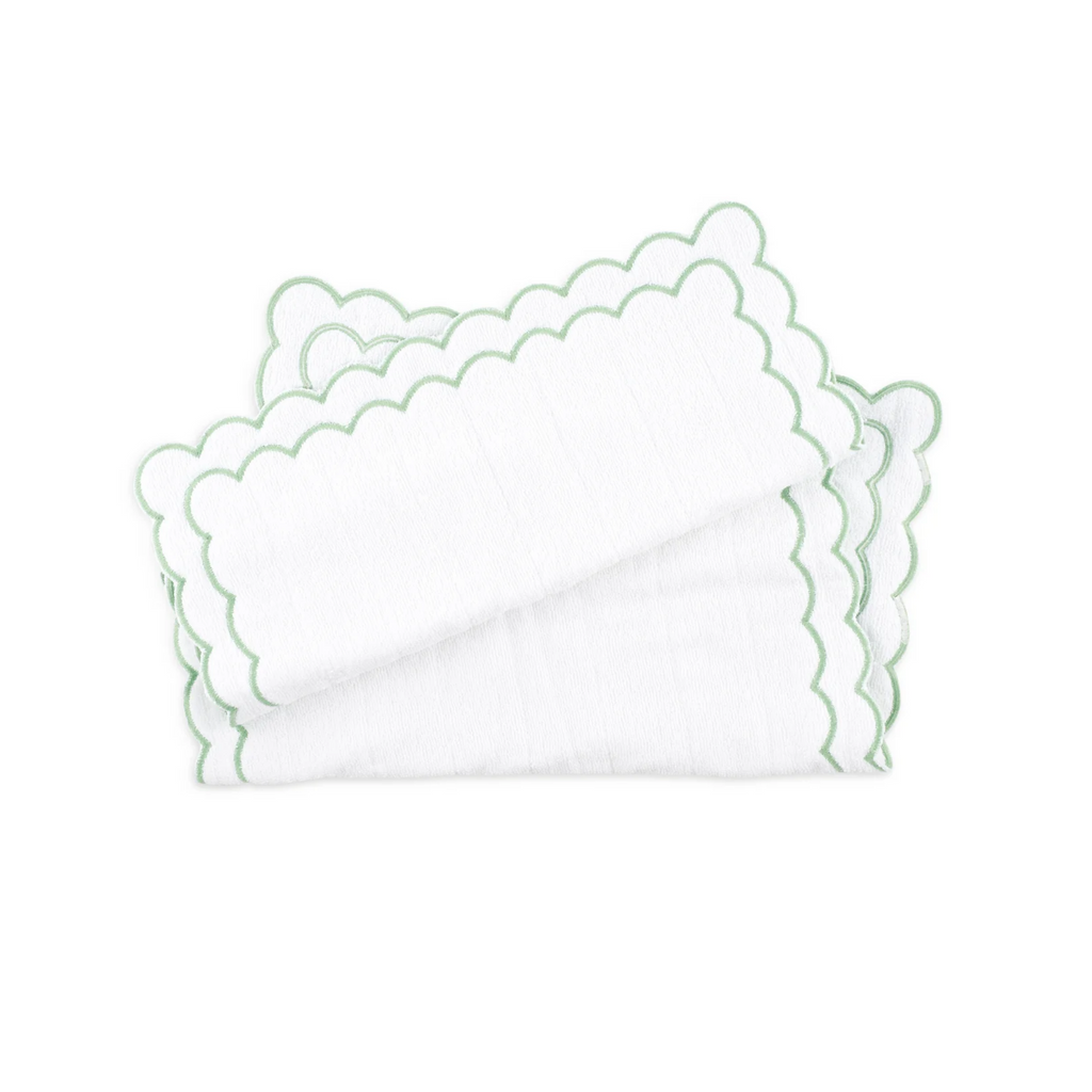 Elevate your bathroom with this luxurious floor mat. You'll love this thick, double sided bath mat finished with double scallop cotton embroidery. Sold individually. Available with light blue, pink, or green trim. This item is final sale and is not eligible for return. Click images for greater detail.