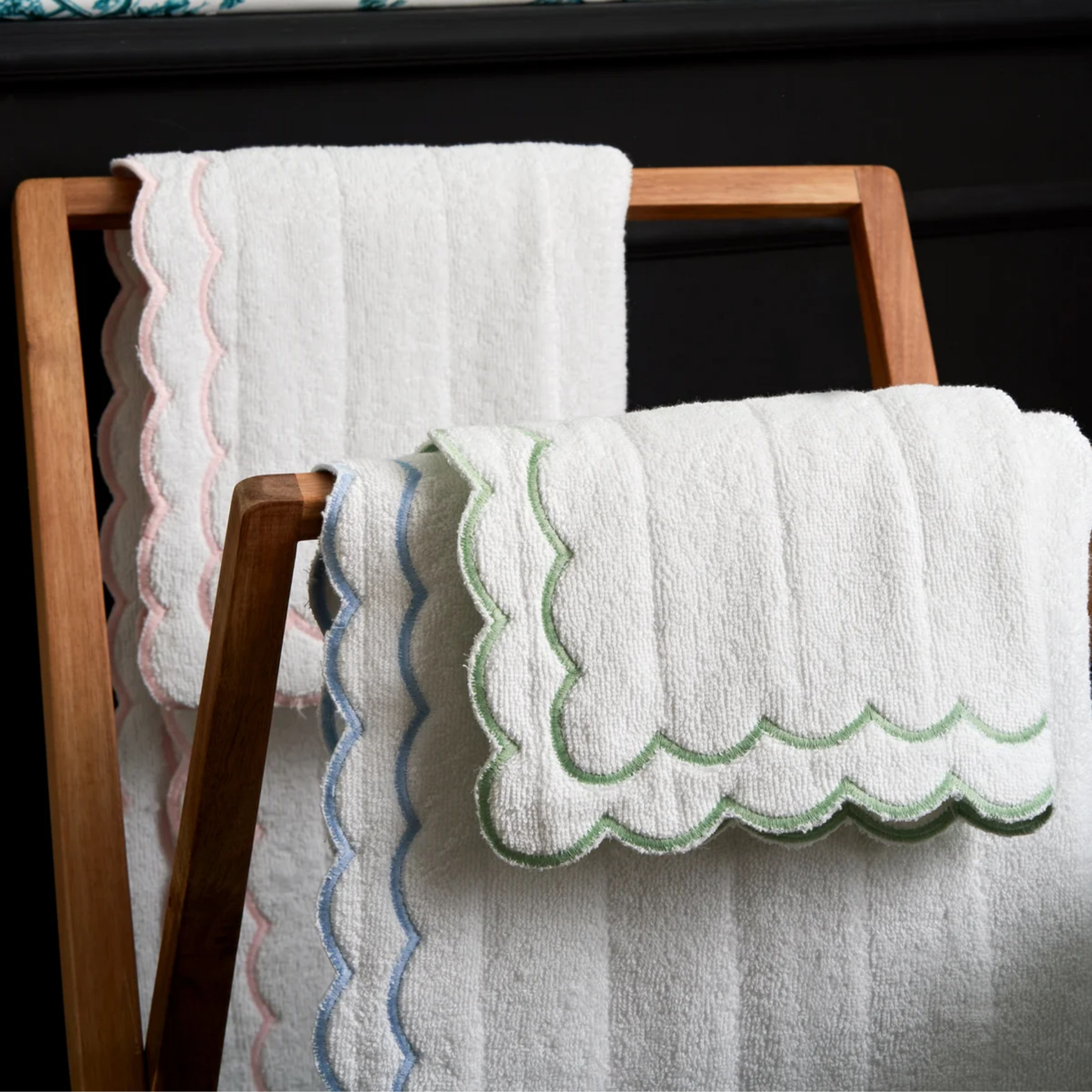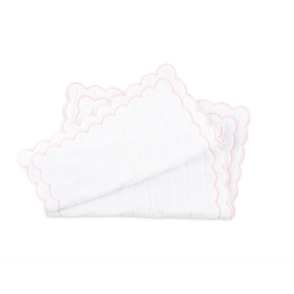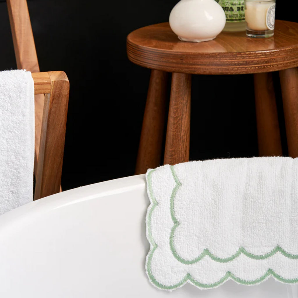 White Scalloped Edge Embroidered Cotton Bath Mat - Available With Pink, Blue Or Green Trim