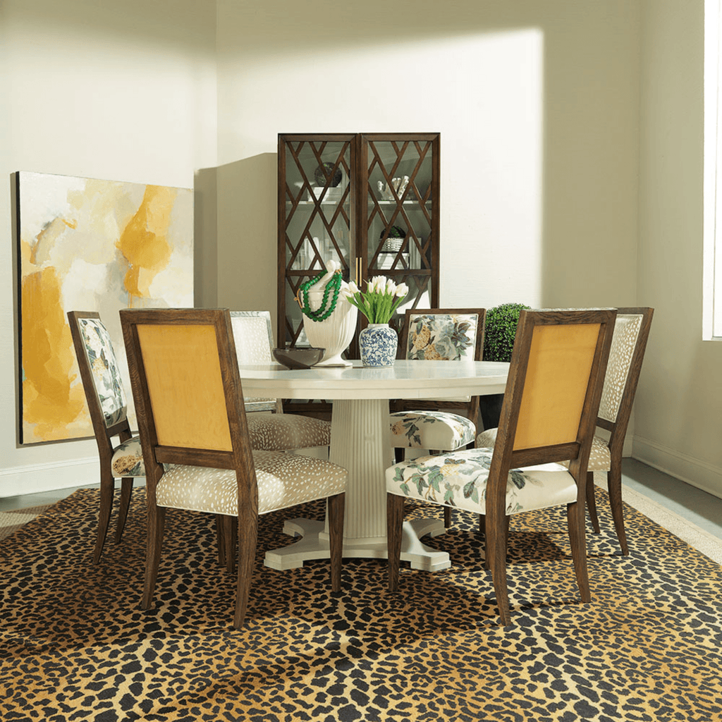 A simply gorgeous table adapted from the 19th century English regency style. A circular top is veneered in a sunburst pattern over a delicate apron rail supported by a central tapered hexagon column that is accented with reeded details mounted to a quatrefoil-shaped base.