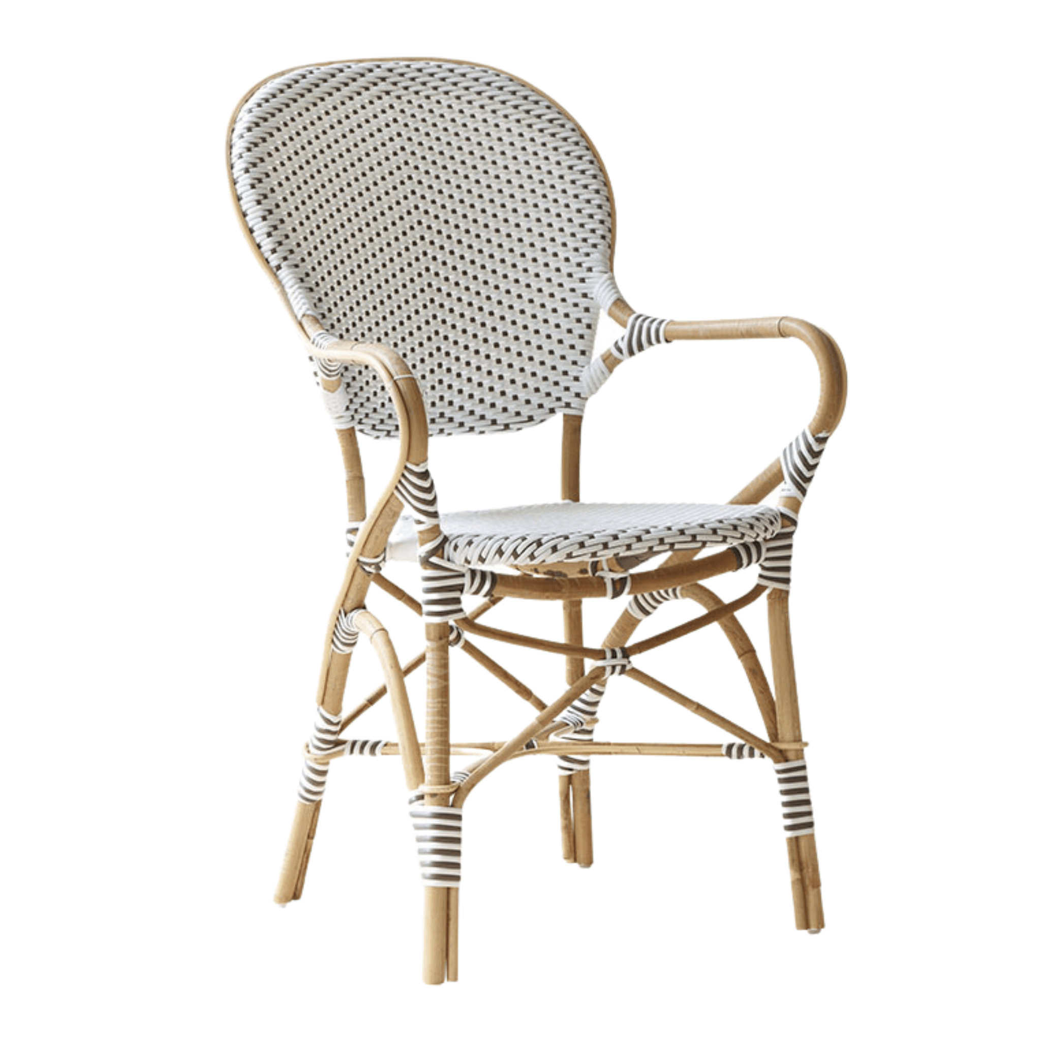 A modern update of a classic Paris bistro chair and can be found in upscale cafes, brasseries, bistros, and restaurants in historic cities in Europe. This bistro chair is hand made using the finest Malacca cane rattan, stainless hardware, and ArtFibre™ that withstands the effects of inclement weather including rain, snow and sun. Each chair is meticulously handcrafted using the century-old method perfected by skilled Danish cane-makers in the 1970s. This technique creates signature organic marks by bending each piece of rattan into shape. These chairs are stylish, comfortable, and durable enough for commercial use as well as private kitchens, patios, or gardens. Designed for indoor or covered outdoor use, the chair's rattan frame will patina to a lovely light gray finish over time. If the original natural rattan look is desired, rub with linseed oil.