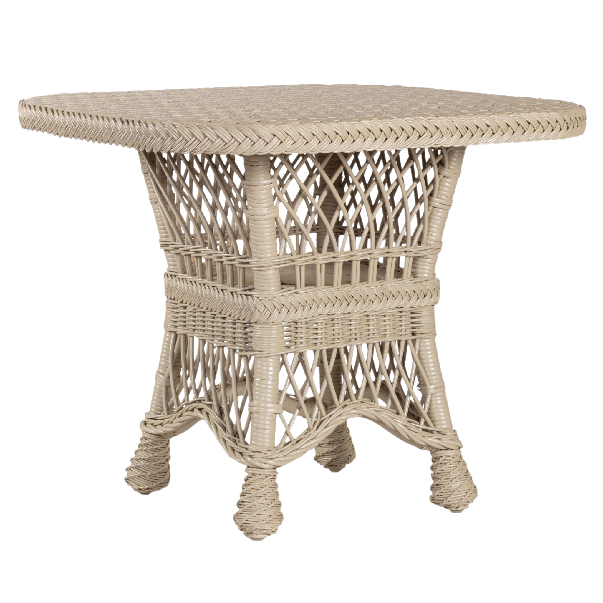 This beautifully handcrafted rounded square children's table with intricate braided detailing is perfect on the porch or in the playroom. Your children's tea parties will never be the same. Made of the same quality materials and to the same standards as the adult furniture line. These make great gifts and are of heirloom quality that can be passed down through generations. No skimping on style with this children's table!
